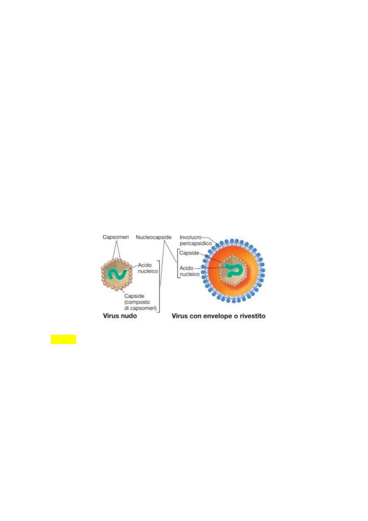 Capsomeri Nucleocapside Involucro pericapsidico Capside Acido nucleico Acido nucleico U Capside (composto di capsomeri) Virus nudo Virus con envelope o rivestito