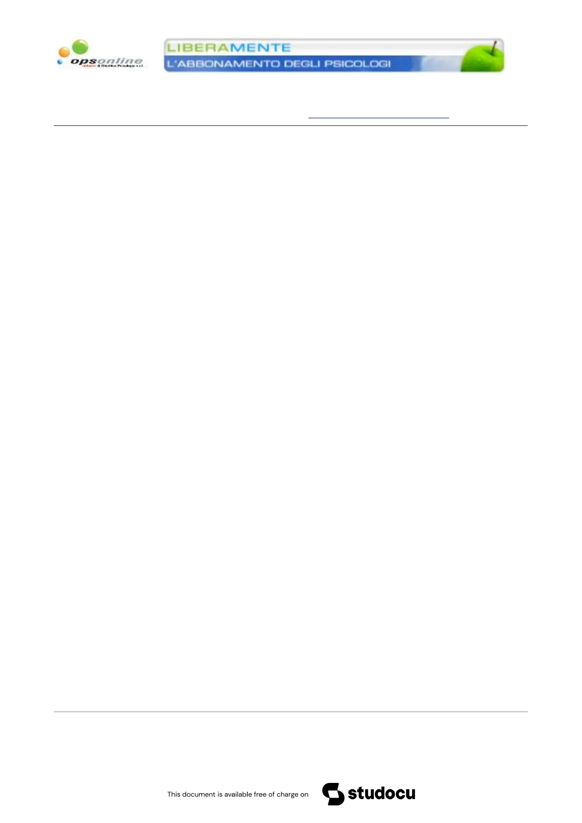 LIBERAMENTE L'ABBONAMENTO DEGLI PSICOLOGI Vuoi scaricare appunti, articoli, temi per l'Esame di Stato senza più vincolo dei crediti? Attiva subito Liberamente l'esclusivo abbonamento per Psicologi e studenti di Psicologia! Scopri tutti vantaggi di Liberamente su http://liberamente.opsonline.it/