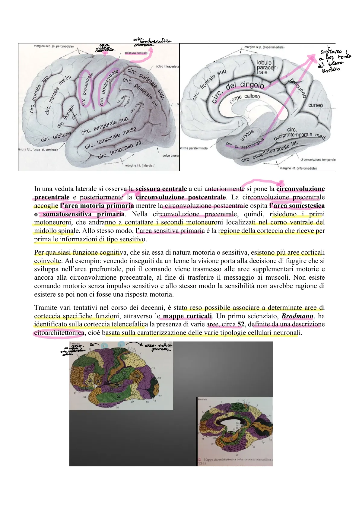 Laterale area A area motoria primaria motoria .19 18 2 11 38 Mediale 37 19 18 20 9 19 25 18 38 37 20 12 Mappa citoarchitettonica della corteccia telencefalica s III-1). circ. frontale s del cingolo precuneo circ. corpo calloso circ. frontale circ. orbitarie circ. temporale media zione paraterminale ssura lat., fossa lat. cerebrale circ. occipitotemporale med circ. temporale inf. solco preoco circ. parietaleNella circonvoluzione precentrale è presente l'area 4 di Brodmann, cioè l'area motoria primaria (MI). Anteriormente, nell'area 6 di Brodmann (sempre nel lobo frontale), risiedono l'area premotoria e l'area supplementare motoria.