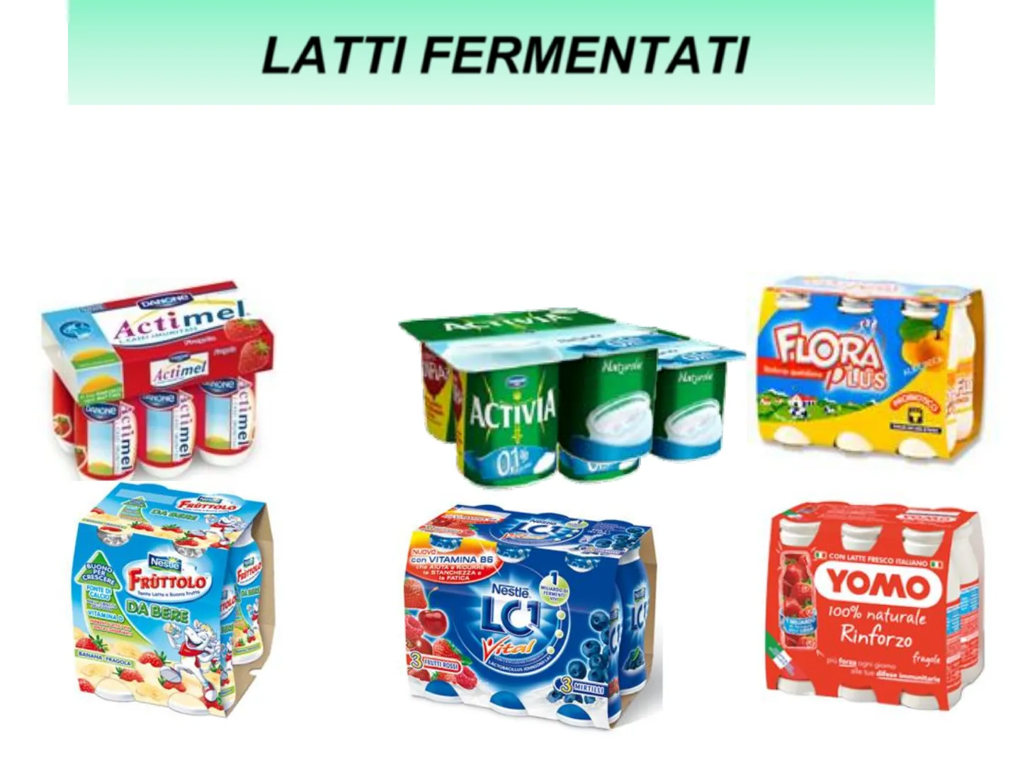 LATTI FERMENTATI Prodotti ottenuti per coagulazione del latte, senza sottrazione di siero, per azione esclusiva di microrganismi, che devono mantenersi vivi e vitali fino al momento del consumo.