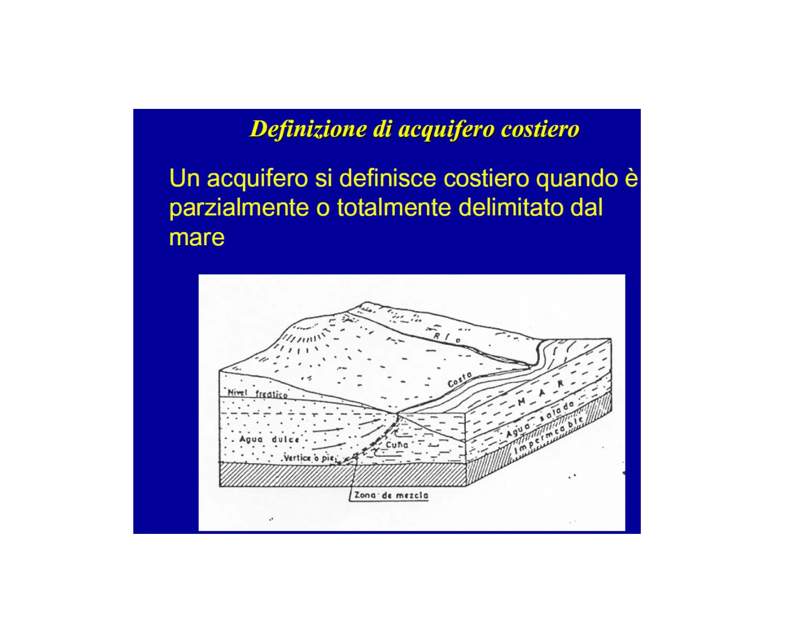 Un acquifero si definisce costiero quando è parzialmente o totalmente delimitato dal mare