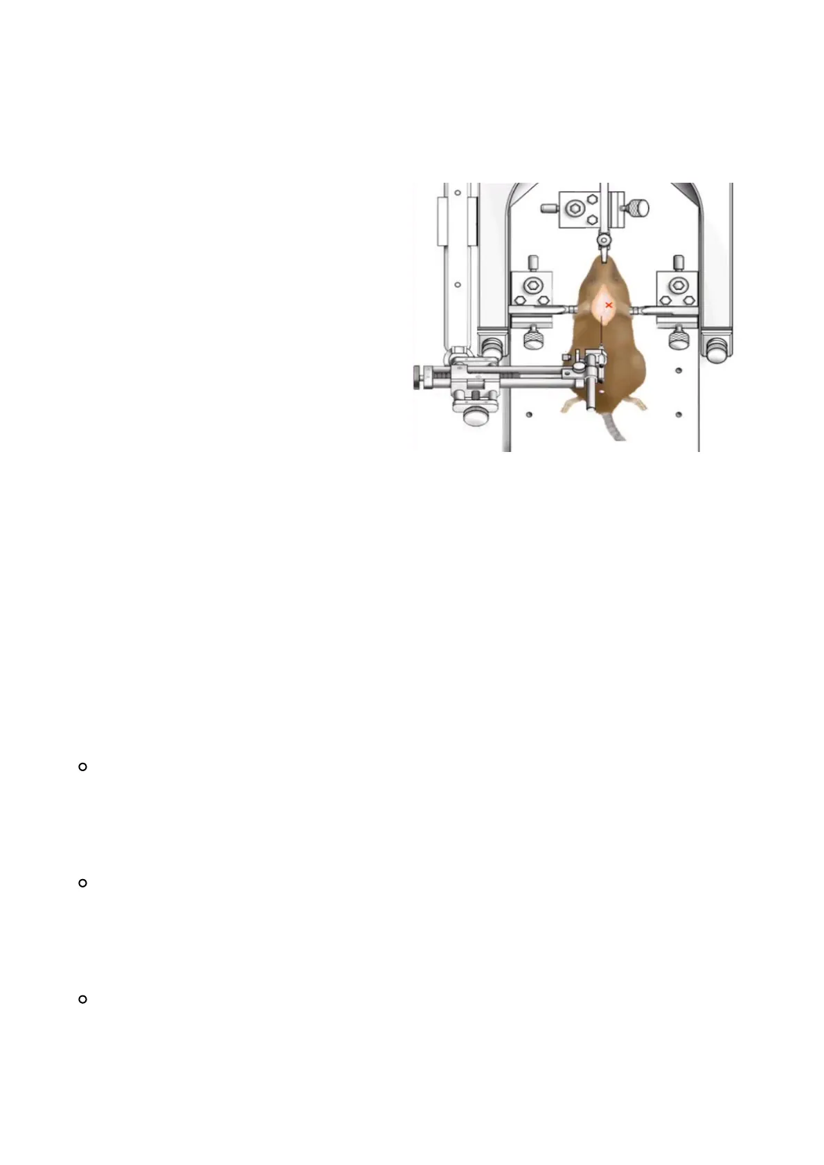 CHIRURGIA STEREOTASSICA La stereotassi indica la capacità di localizzare gli oggetti nello spazio. L'apparato stereotassico è costituito da un fermatesta, che fissa in posizione standard il cranio dell'animale, e un reggielettrodo, che sposta l'elettrodo e la cannula nelle tre dimensioni spaziali, secondo distanze misurate. Per eseguire un simile intervento è necessario studiare prima un atlante stereotassico: è un libro, un sito web o un software che contiene immagini che corrispondono alle sezioni frontali del cervello effettuate a varie distante mostrali e caudali rispetto al bregma. Il cranio è costituito da diverse ossa, che crescono insieme e formano suture (giunture). La testa dei neonati contiene un punto molle a livelle dell'intersezione tra la satura sagittale e quella coronale, chiamato fontanella. Quando l'intervallo tra le suture si richiude, il punto d'intersezione è denominato bregma, dal termine greco che significa "porzione frontale della testa". Ogni immagine dell'atlante stereotassico è contrassegnata in base alla distanza della sezione anteriormente o posteriormente al bregma. La griglia di ciascuna immagina indica le distanze delle strutture cerebrali ventrali rispetto alla sommità del cranio e laterali rispetto alla linea mediana. € 0 -- D E . 27 F 21 F G I - 9 dc baa b c d A B C 22 O G H IL'APPARATO STEREOTASSICO L'apparato stereotassico include un fermatesta, che mantiene il cranio dell'animale nella posizione adeguata, un reggielettrodo o reggicannula, e un meccanismo calibrato che muove il reggielettrodo/reggicannula secondo distanze misurate lungo i tre assi: anteriore-posteriore, dorsale-ventrale e laterale-mediale. Una volta trovate le coordinate su un atlante stereotassico, si anestetizza l'animale, si posiziona l'apparato e si incide lo scalpo. Dopo la localizzazione del bregma, si riportano i numeri appropriati sull'apparato stereotassico, si perfora il cranio con il trapano e si inserisce il reggielettrodo nel cervello alla corretta profondità. In questo modo, la punta dell'elettrodo o della cannula è portata esattamente nell'area desiderata e si può procedere con la lesione. Esistono anche apparati stereotassici da utilizzare sull'uomo. Talvolta i neurochirurghi producono lesioni sottocorticali: ad esempio, per ridurre i sintomi della malattia di Parkinson. O O