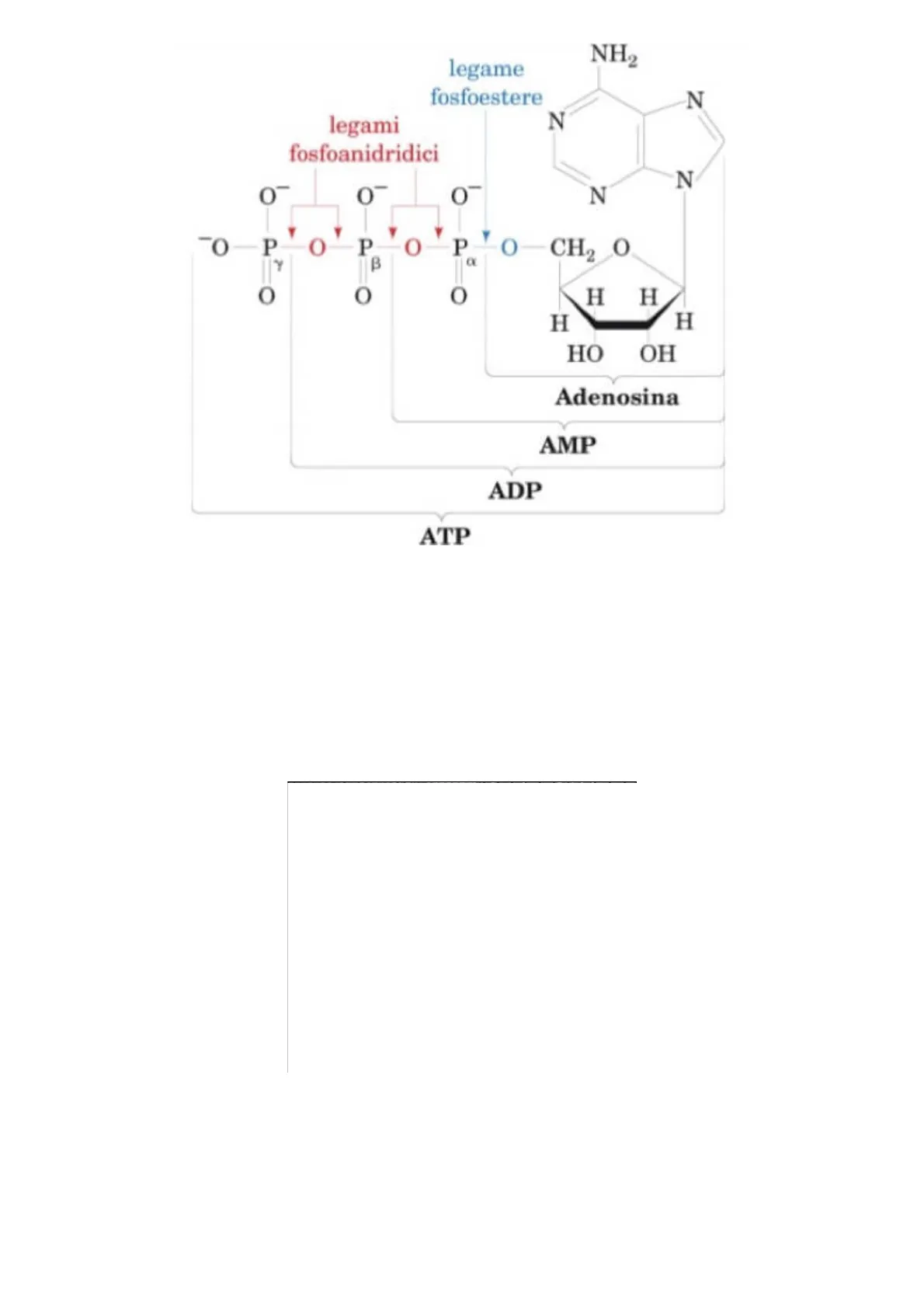 NH2 legame fosfoestere N legami fosfoanidridici N N 0 0 0 N O P 0 P O P 0 CH2_O B O O O H H H H HO OH Adenosina AMP ADP ATP