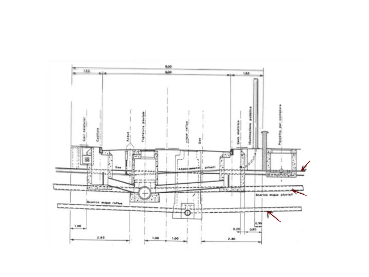 Disposizione delle varie canalizzazioni nelle strade