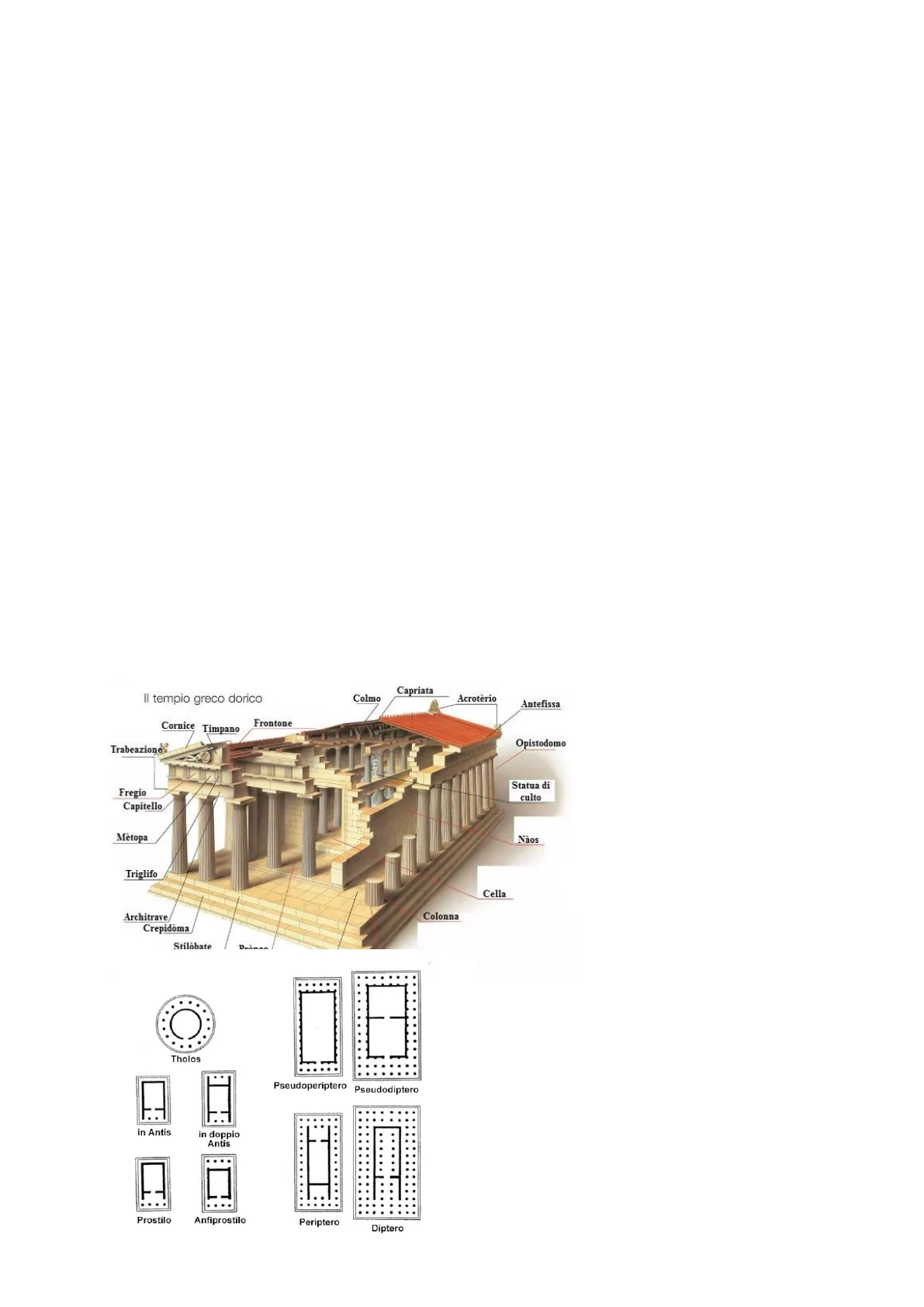 due colonne (stilos = colonna) tre le ante -> tempio in antis, prostilo, antiprostilo, periptero,