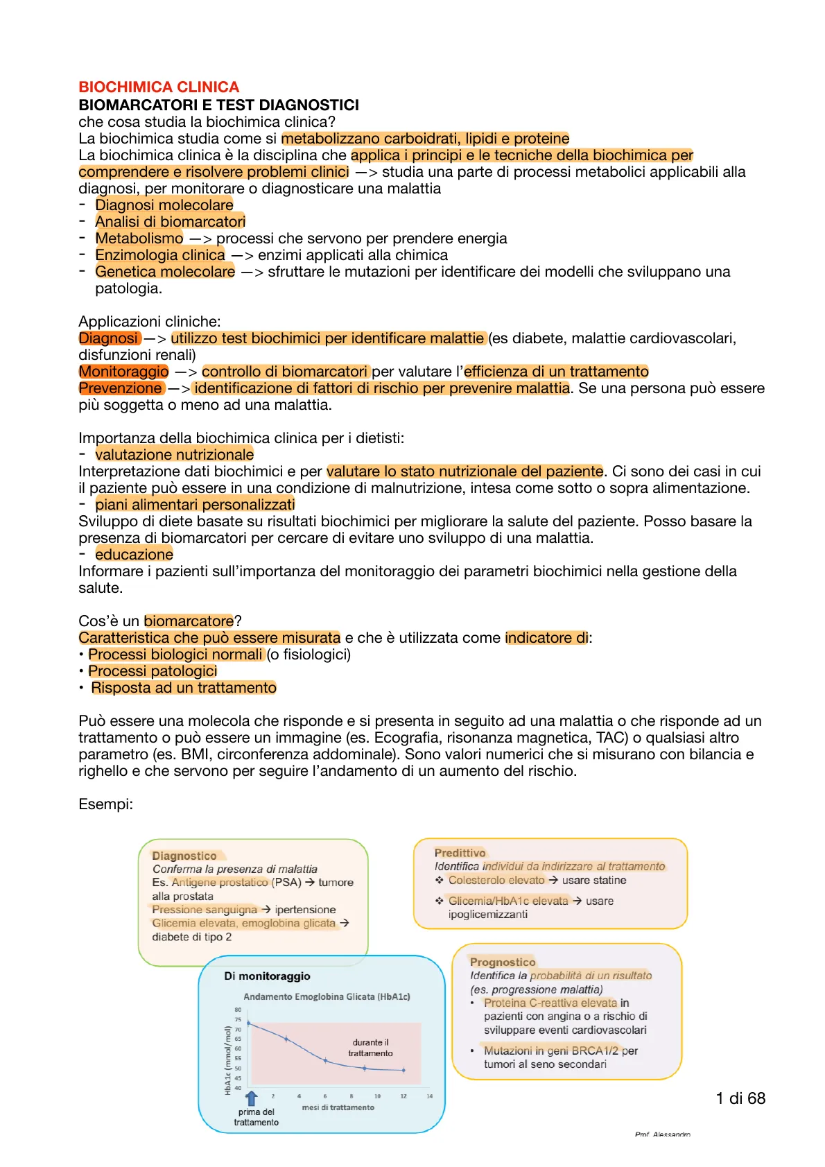 Documento da Università su Biochimica Clinica Biomarcatori e Test Diagnostici. Il Pdf, di Biologia a livello universitario, esplora la biochimica clinica, i biomarcatori e i test diagnostici, con un'enfasi sul metabolismo dei lipidi e il ruolo delle lipoproteine.
