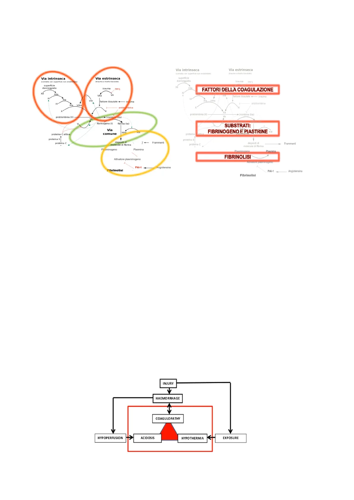 Documento sulla coagulopatia nel trauma. Il Pdf, utile per l'Università in Scienze, esplora i meccanismi di coagulazione intrinseca ed estrinseca, le loro alterazioni e l'importanza della triade letale, supportato da diagrammi e tabelle.
