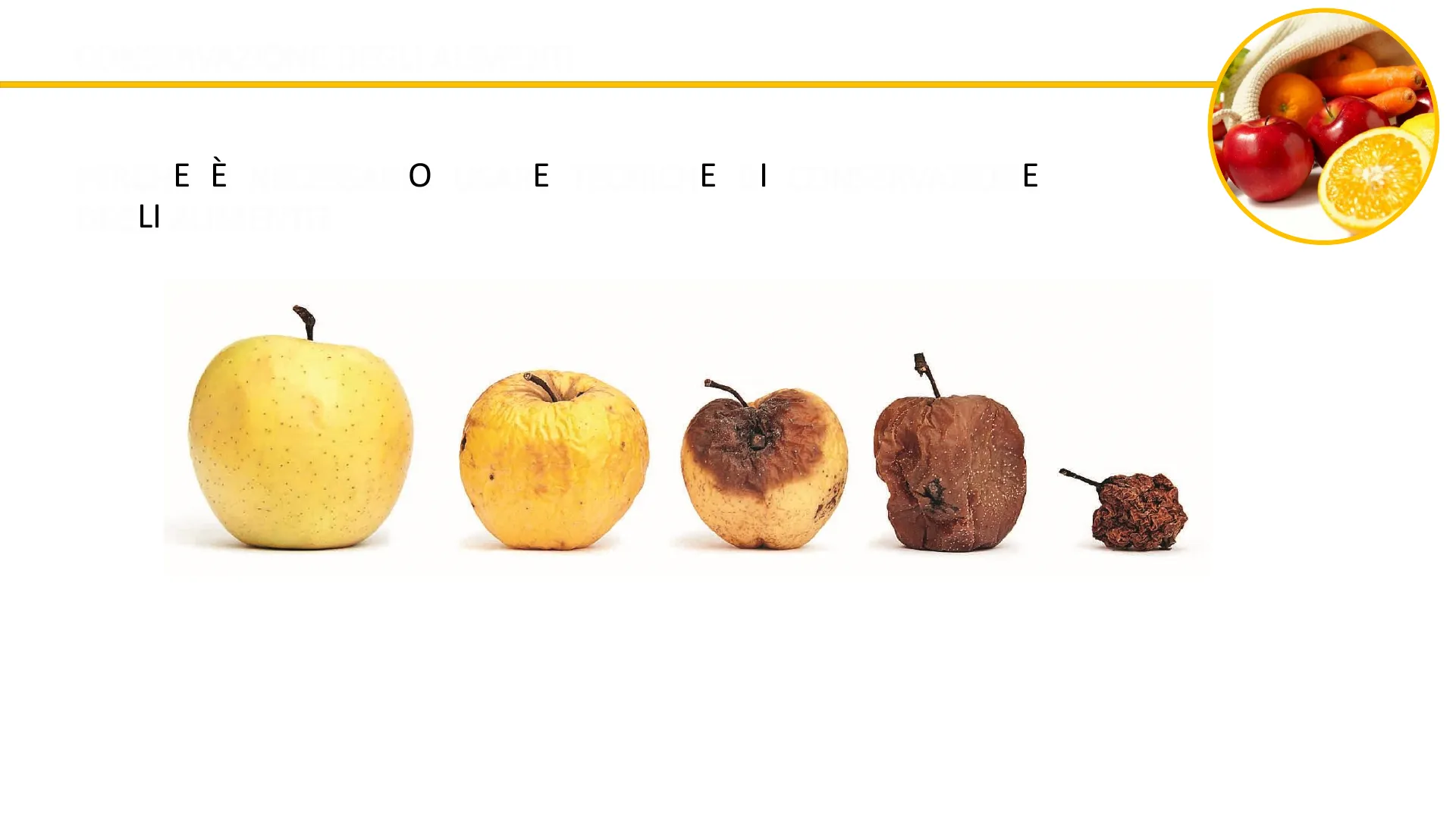 GLI ALIMENTI FRESCHI SI DETERIORANO A CAUSA DI MICRORGANISMI: MICRORGANISMI INTERNI: SONO PRESENTI NELL'ALIMENTO E SI MOLTIPLICANO GRAZIE ALL'AMBIENTE FAVOREVOLE COME L'ACQUA E LA TEMPERATURA MITE MICRORGANISMI ESTERNI: ENTRANO NELL'ORGANISMO ATTRAVERSO L'ARIA