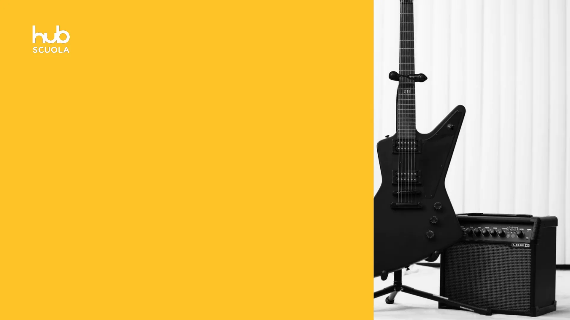 Slide da Hub Scuola sugli elettrofoni. Il Pdf, pensato per la scuola superiore e la materia di musica, descrive i diversi tipi di elettrofoni, come la chitarra e il basso elettrico, e le loro componenti principali e funzionamento.