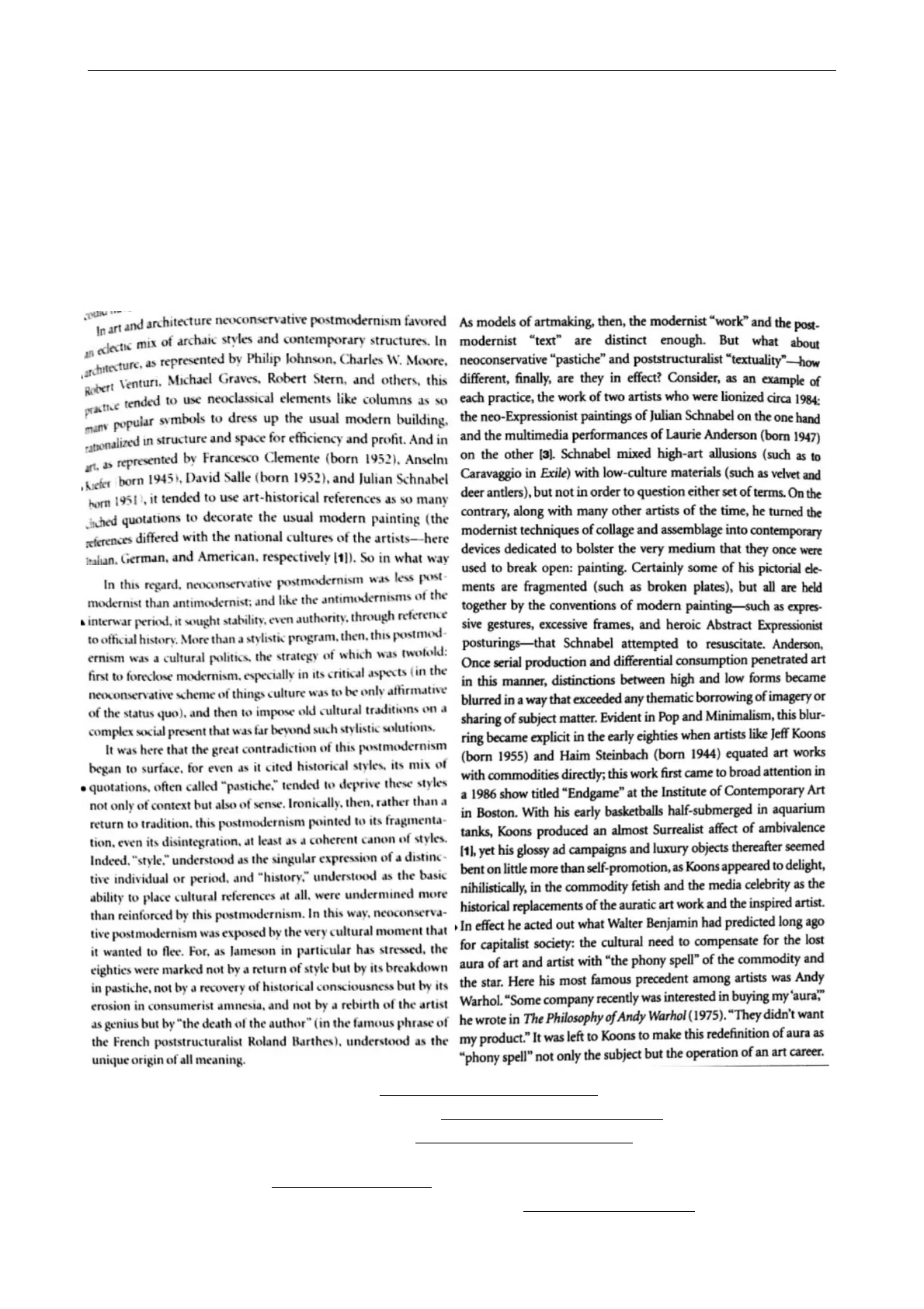 In art and architecture neoconservative postmodernism favored As models of artmaking, then, the modernist "work" and the post-