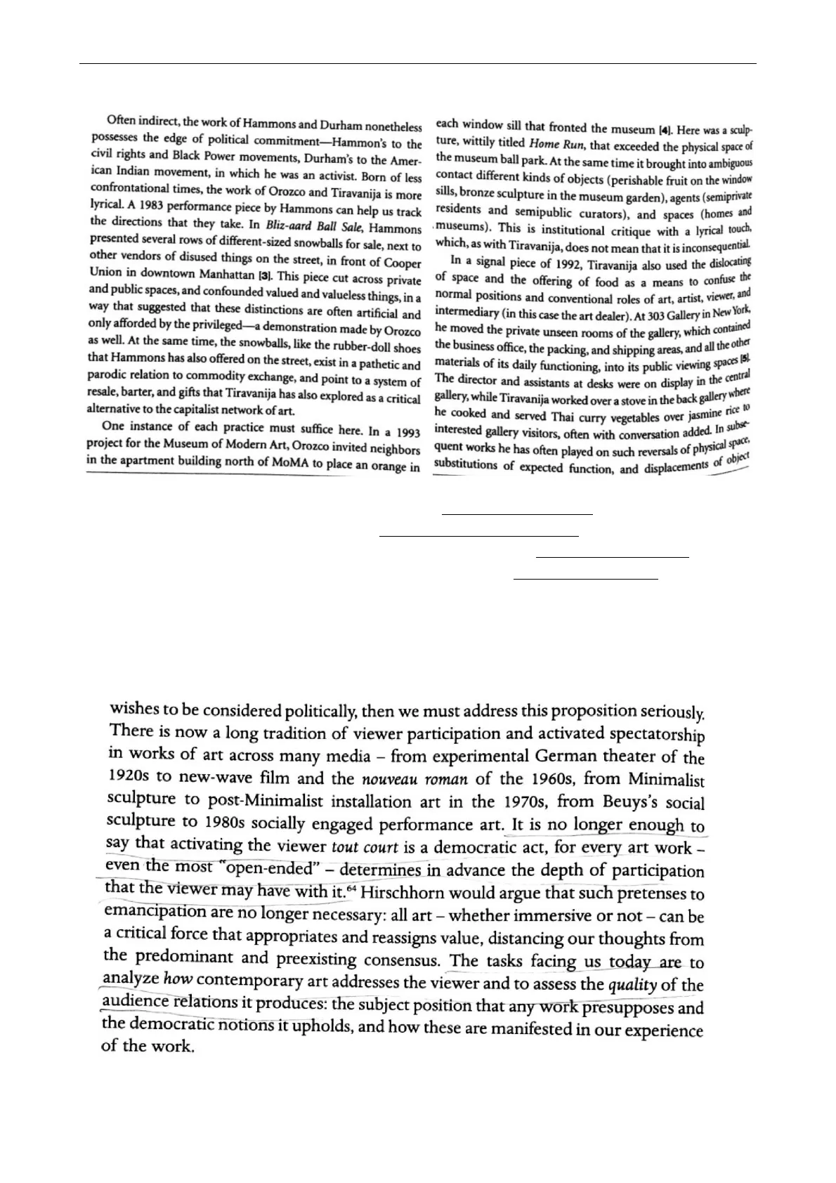 sculpture to 1980s socially engaged performance art. It is no longer enough to