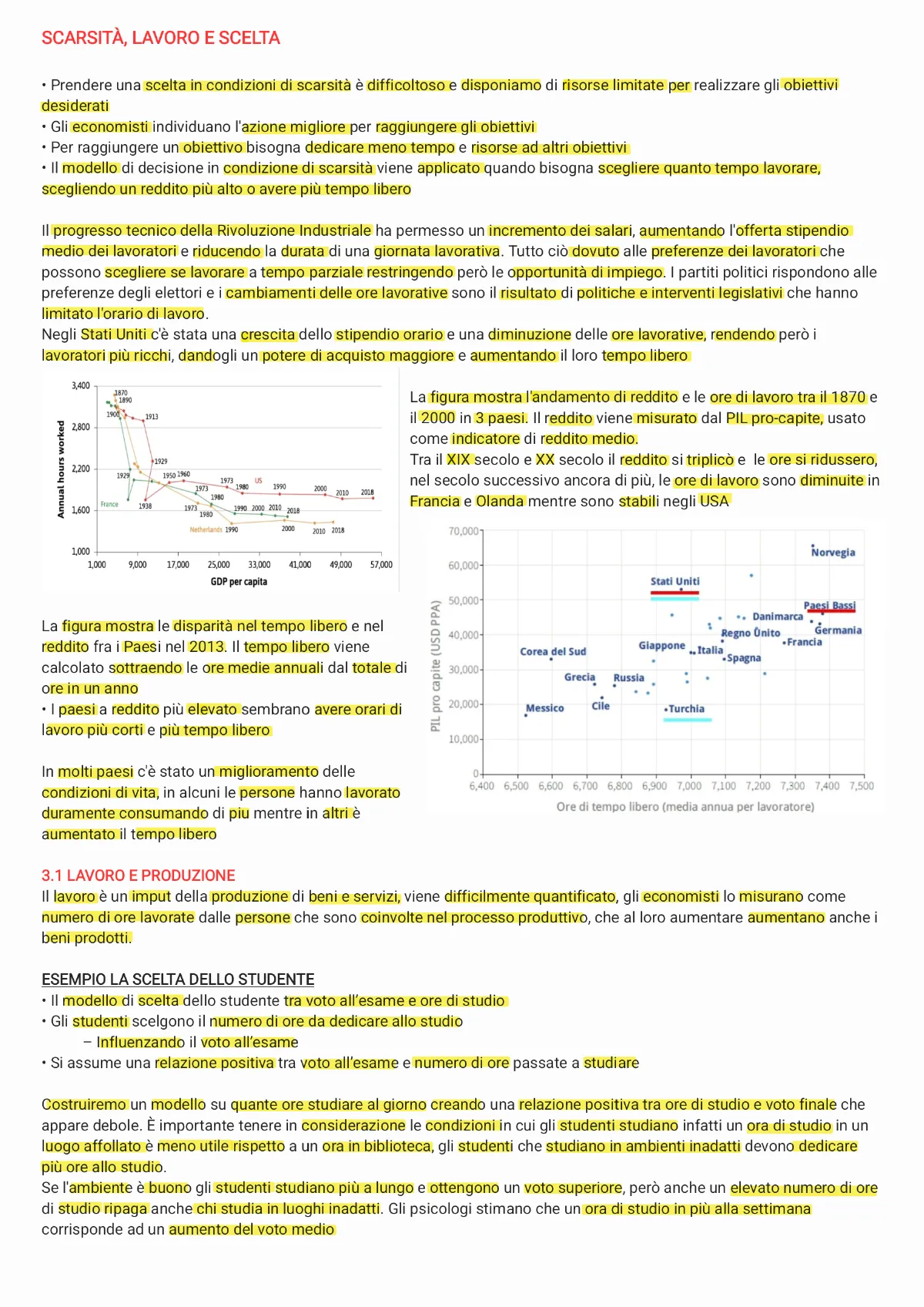 Documento da Università su Scarsità, Lavoro e Scelta. Il Pdf, di Economia, esplora i concetti di scarsità, lavoro e scelta, applicandoli alla decisione dello studente tra voto e tempo libero, analizzando l'impatto del progresso tecnico e introducendo produttività marginale, curve di indifferenza e vincoli di bilancio.