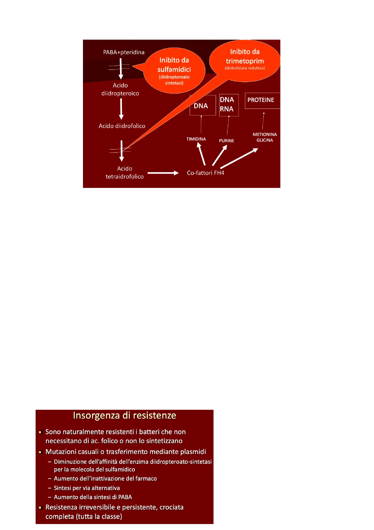 Quindi, andando a bloccare la sintesi dell'acido folico, che si riduce ad acido folinico, viene bloccata la biosintesi del DNA e dell'RNA.