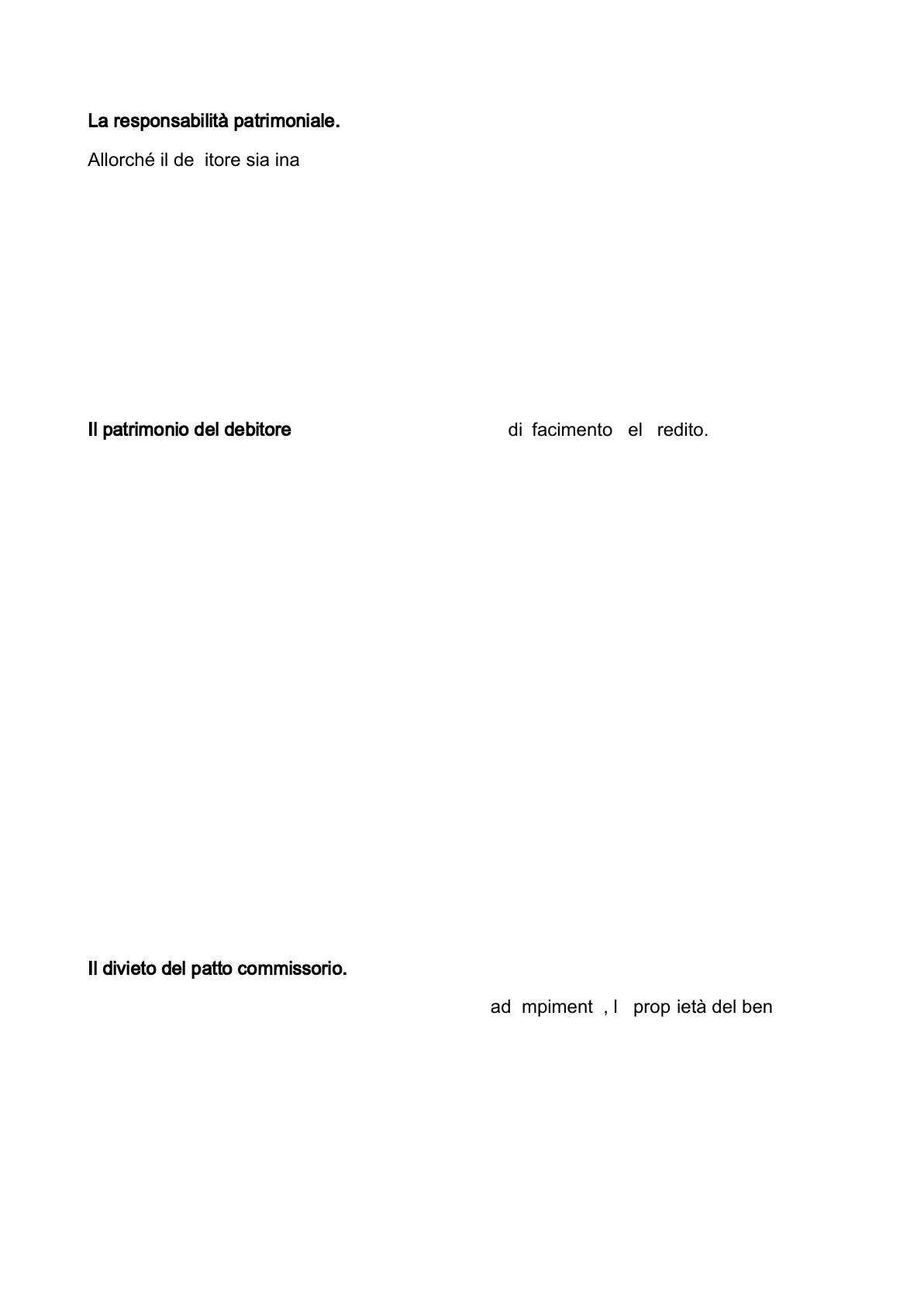 Documento dall'Università sulla responsabilità patrimoniale, il divieto di patto commissorio e le cause legittime di prelazione. Il Pdf, utile per studenti universitari di Diritto, esplora concetti come la garanzia patrimoniale, il pegno mobiliare non possessorio e i privilegi generali e speciali, fornendo spiegazioni dettagliate delle normative e delle implicazioni giuridiche.