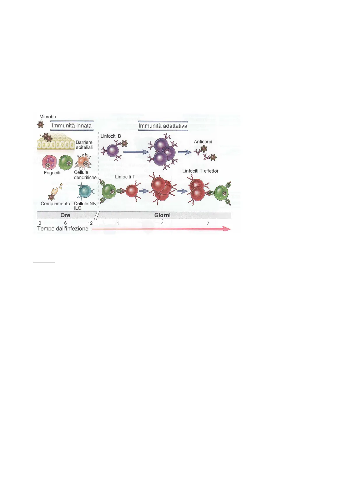 Microbo Immunità innata Immunità adattativa Linfociti B Barriere epiteliali Anticorpi - - Fagociti Cellule dendritiche : 1 Linfociti T Itino Complemento Cellule NK, ILC Ore Giorni 0 6 12 -1 4 7 Tempo dall'infezione L'immunità innata si attiva entro 12h dall'infezione, risulta, però, priva della memoria immunologica, propria dell'immunità adattativa.