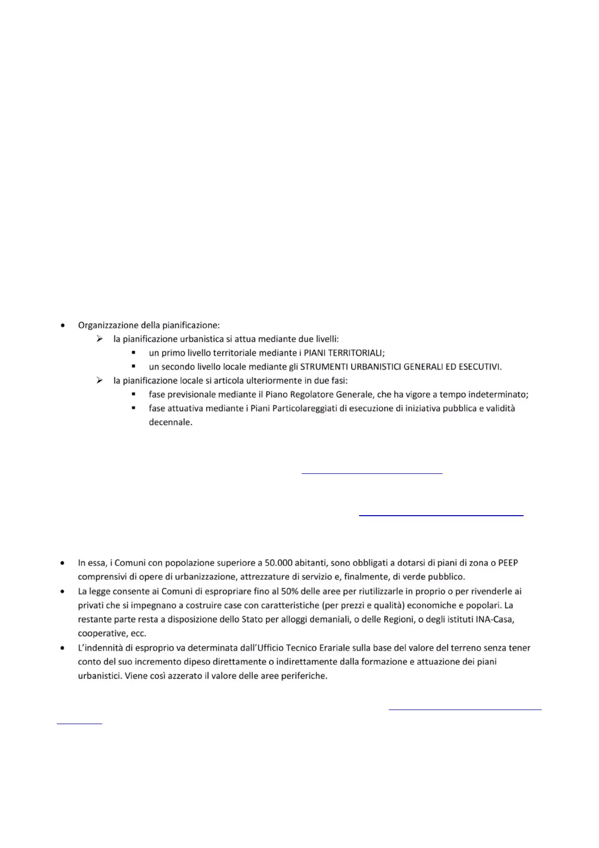 • E' la prima legge che a partire dall'unita d'Italia affronta argomenti di carattere urbanistico