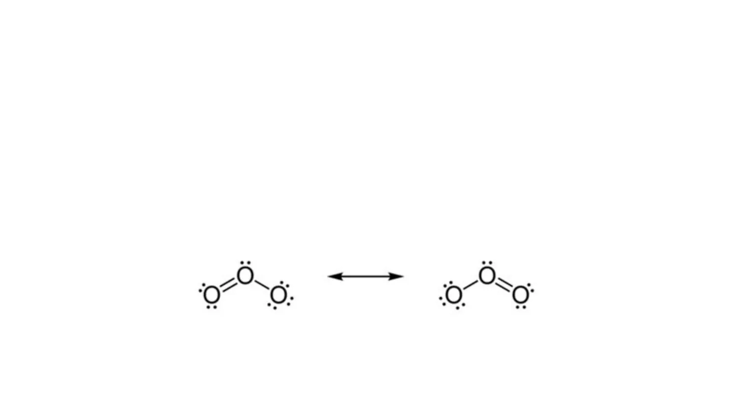 Tuttavia, l'evidenza sperimentale suggerisce che in O3 i due legami tra gli atomi di ossigeno sono identici e che la loro lunghezza è circa a metà tra quella di un legame semplice e quella di uno doppio. Questa formula di struttura, quindi, non rappresenta la realtà.