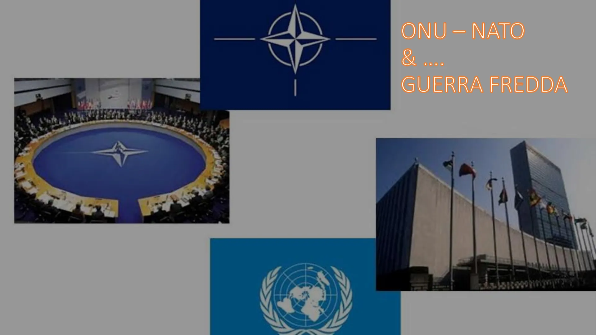 Slide da Ed. Civica Storia su Onu, Nato e Guerra Fredda. Il Pdf esplora le dinamiche tra blocco orientale e occidentale, la crisi della coesistenza pacifica e la struttura interna della NATO, con mappe concettuali e schemi per la scuola superiore.