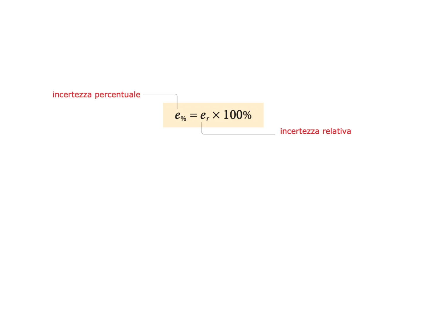 L'incertezza percentuale (e.) è l'incertezza relativa espressa come rapporto percentuale: incertezza percentuale % = e, × 100% incertezza relativa L'incertezza percentuale e, e l'incertezza relativa er sono la stessa cosa detta in modi diversi.