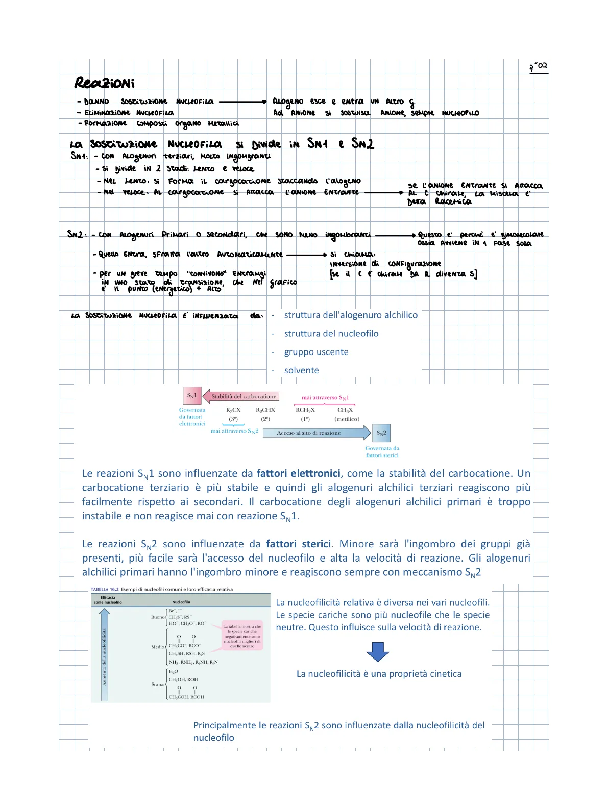 La SOSTITUZIONE NUCLEOFiLa si Divide IN SN1 & SN2 SN1: - CON ALOgenUri terziari, MOLTO ingombranti - Si Divide IN 2 Stadi: Lento e veloce - NEL LENTO: Si Forma il cargocazione staccando l'alogeNo - Nel veloce: AL cargocazione si Attacca L'UNIONE ENTrante se L'aNiONE ENTrante Si Attacca AL C Chirale, La Miscela C' Detta RaceMica SN.2: - CON ALOgenUri PriMari o secondari, Che SONO MENO ingombranti Questo è perché Ossia Avviene IN 1 l' BiMolecolare Fase sola - Quello ENTra, SFratta l'altro Automaticamente chiama : INVersione di CONFigurazione "CONVIVONO" ENTramBi [se il C è chirate DA R diventa s] - per UN Breve tempo IN UNO stato di Transizione, Che Nel grafico e' il PUNTO (energetico) + ALTO