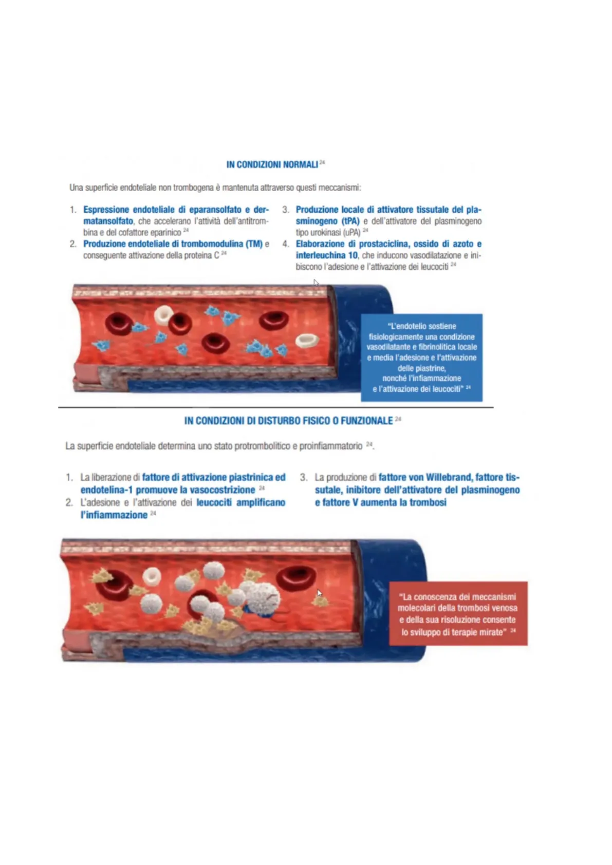 4 "L'endotelio sostiene fisiologicamente una condizione vasodilatante e fibrinolitica locale e media l'adesione e l'attivazione delle piastrine, nonché l'infiammazione e l'attivazione dei leucociti" 24