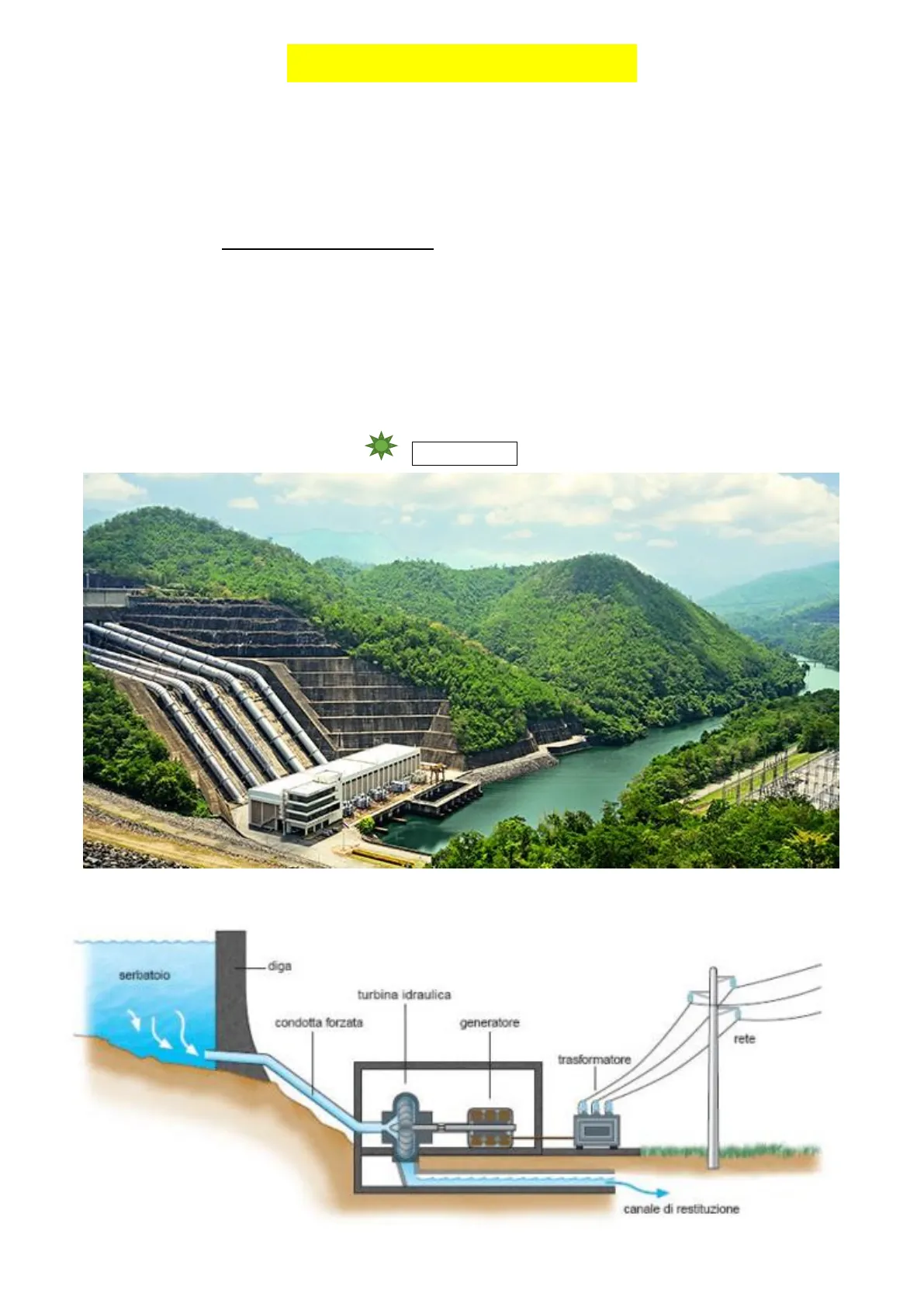 ACQUA) Utilizzano l'acqua di fiumi raccolta in una diga e fatta scorrere dentro condotte forzate. Essa giunge alla centrale dove attiva le turbine, generando energia meccanica. Le turbine mettono in moto il generatore che trasforma l'energia meccanica in energia elettrica. Questa viene poi trasportata dai cavi elettrici d'alta tensione nelle periferie delle nostre città. I trasformatori riducono la forza della corrente affinché possa essere utilizzata dagli elettrodomestici, senza bruciarli. Energia pulita