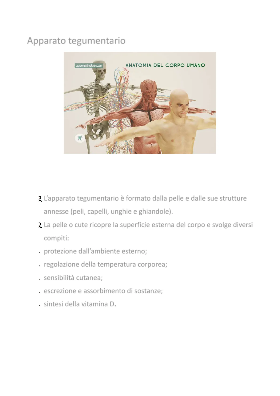 & L'apparato tegumentario è formato dalla pelle e dalle sue strutture annesse (peli, capelli, unghie e ghiandole).