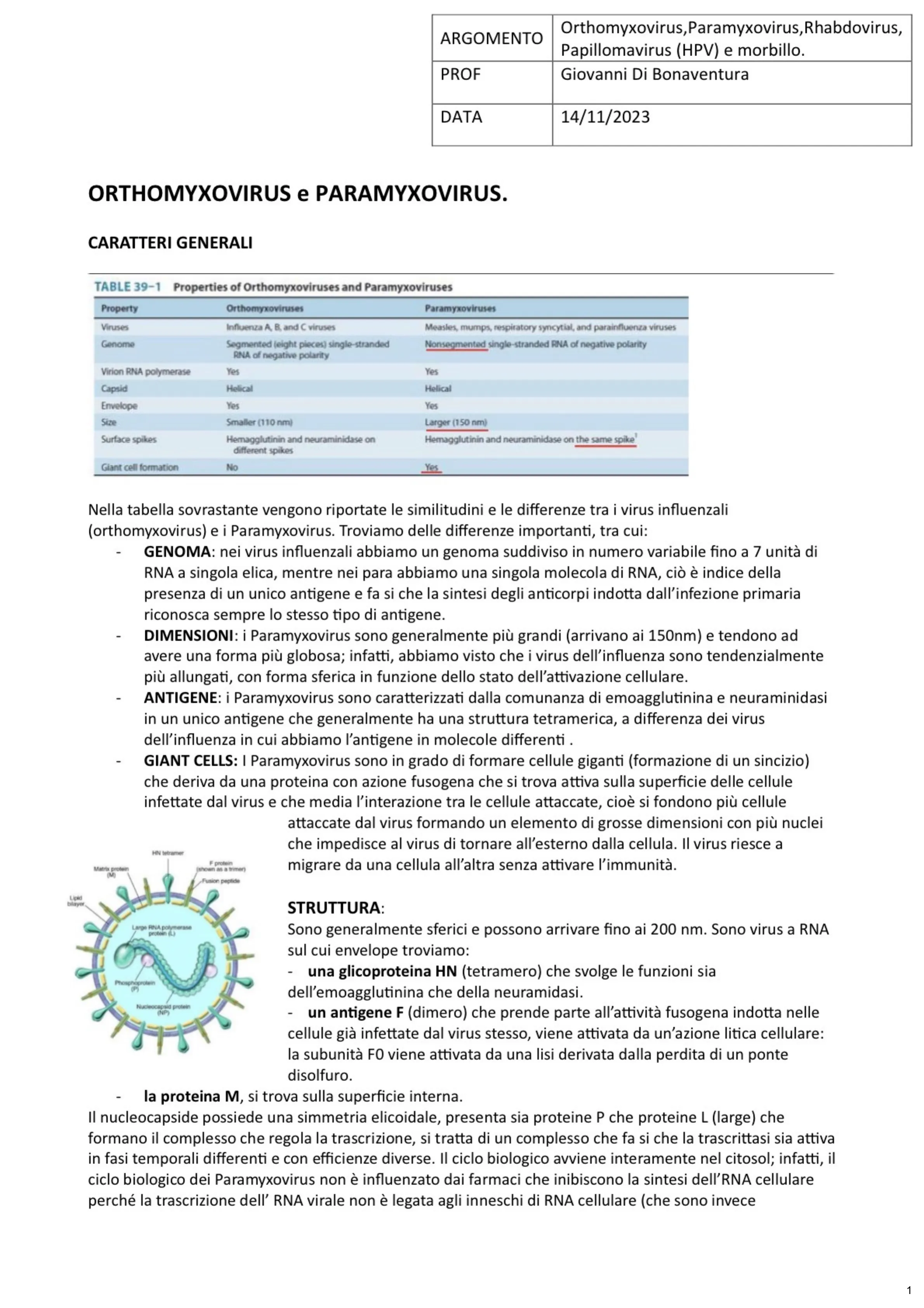 (orthomyxovirus) e i Paramyxovirus. Troviamo delle differenze importanti, tra cui: