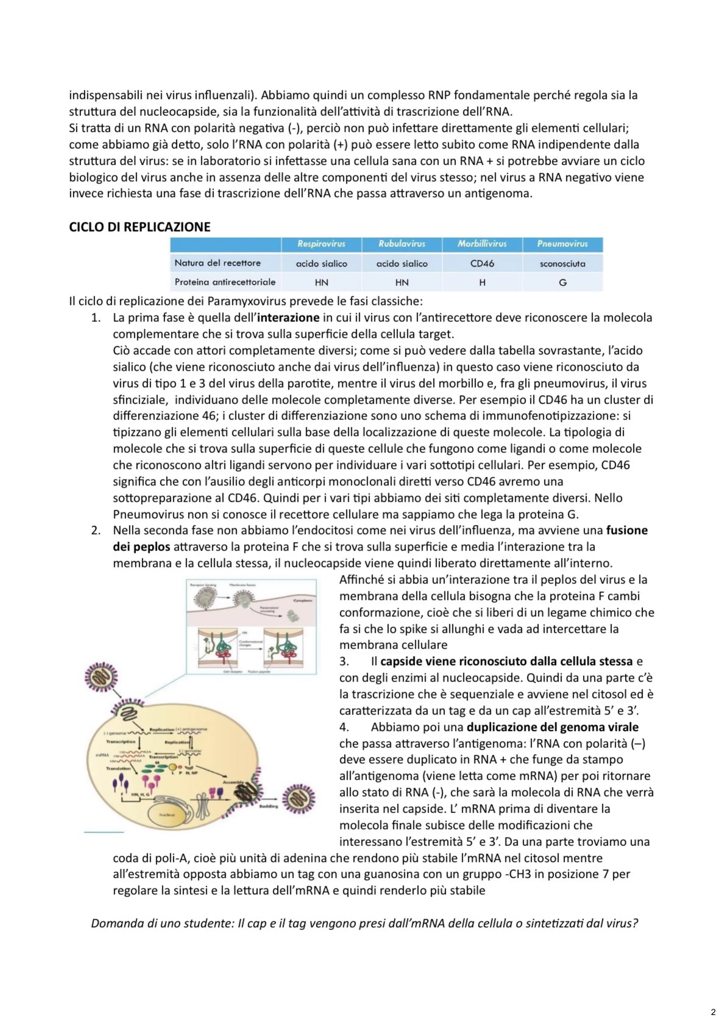 Domanda di uno studente: Il cap e il tag vengono presi dall'mRNA della cellula o sintetizzati dal virus?