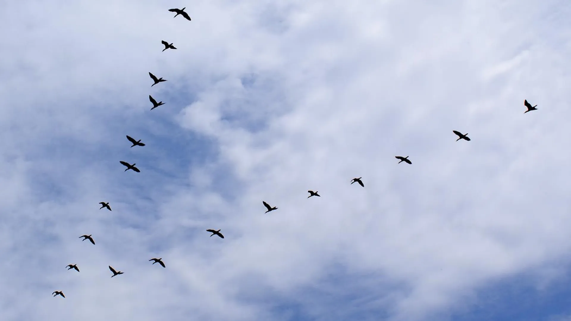 Gruppo di oche durante la migrazione. Alcuni animali vivono in gruppo con altri individui della stessa specie. Le associazioni per difesa possono essere casuali e di breve durata, o durare per un certo periodo e coinvolgere molti esemplari (migrazione negli insetti, mandrie di erbivori, uccelli coloniali al momento della riproduzione per difendere il nido e la prole).