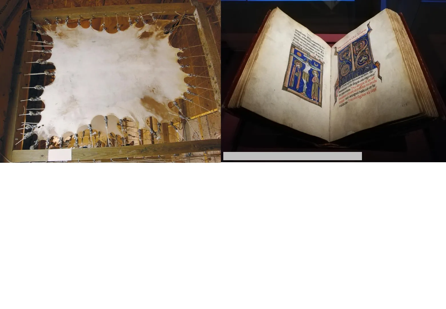 tutes. acicatalexphim.fora crultanonc concelebranr.Cu quib: ct não uxs.urabmic ti tubeao teprecamu fuppla confeflic pudire. Se Ge Grilim vpm filun tuum Do mmum min fipplices mamu cpamus. Ine chgat le cc of cuicturatcare cterteus manib: oscar.un accepta habeas.et be nedicas. 7uc terlignee ti fuje Foto S. Di Guardo - mostra Roma Medievale 2023 Nel XII secolo la produzione di libri manoscritti ebbe un grande impulso. I testi venivano realizzati su pergamena e raccolti nei libri, che soppiantarono definitivamente la tipologia del rotolo. La pergamena è un supporto ricavato dalla pelle animale (vedi in alto a sinistra) opportunamente pulita, sbiancata e levigata. I testi, redatti soprattutto nei monasteri, venivano decorati con illustrazioni pregiate, realizzate da persone specializzate. La tecnica di decorazione dei testi è detta miniatura: il termine inizialmente indicava solo l'uso del minio (un colore minerale rosso) usato per creare dei capilettera, ossia le prime lettere di ogni paragrafo, finemente decorate e di dimensioni maggiori del resto del testo.