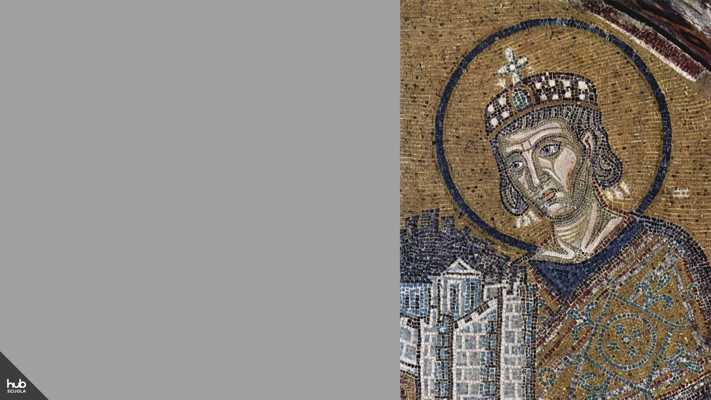 Slide da Hub Scuola su Da Costantino a Teodosio: l'Impero diventa cristiano. Il Pdf esplora il periodo storico della cristianizzazione dell'Impero Romano, con eventi chiave e le loro conseguenze sulla struttura sociale e politica, adatto per la scuola superiore di Storia.