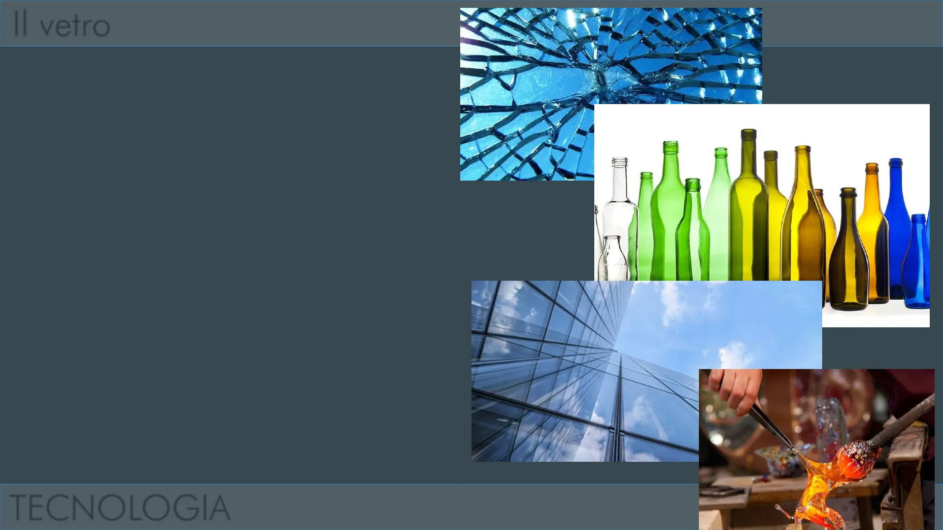 IL VETRO TECNOLOGIAvetro Il vetro è un materiale ottenuto dalla fusione e solidificazione di sostanze di origine minerale.