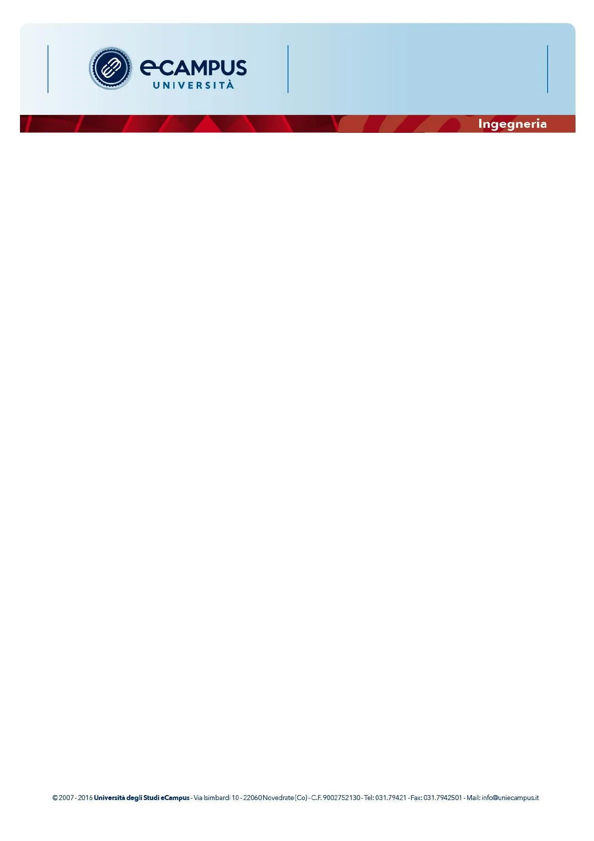 C 2007 - 2016 Università degli Studi eCampus - Via Isimbardi 10 - 22060 Novedrate (Co)- C.F. 9002752130 - Tel: 031.79421 - Fax: 031.7942501 - Mail: info@uniecampus.it