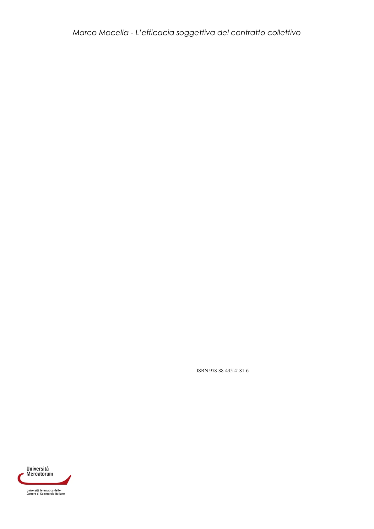 Università telematica delle Camere di Commercio ItalianeMarco Mocella - L'efficacia soggettiva del contratto collettivo ISBN 978-88-495-4181-6