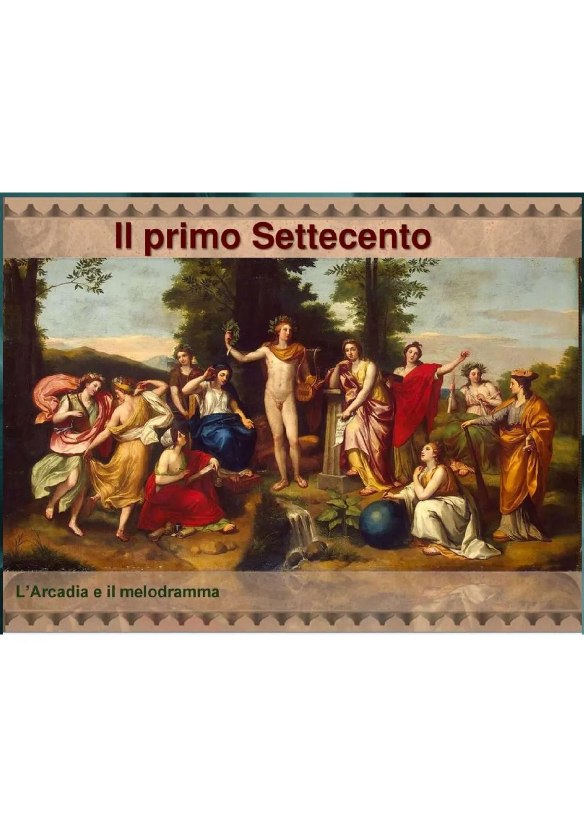 Slide sul primo Settecento, teatro italiano. La presentazione, adatta per la scuola superiore, esplora l'evoluzione del teatro italiano tra il Seicento e il primo Settecento, concentrandosi sull'Arcadia, il melodramma, la commedia dell'arte e la riforma di Zeno e Metastasio, con definizioni e contesti storici.