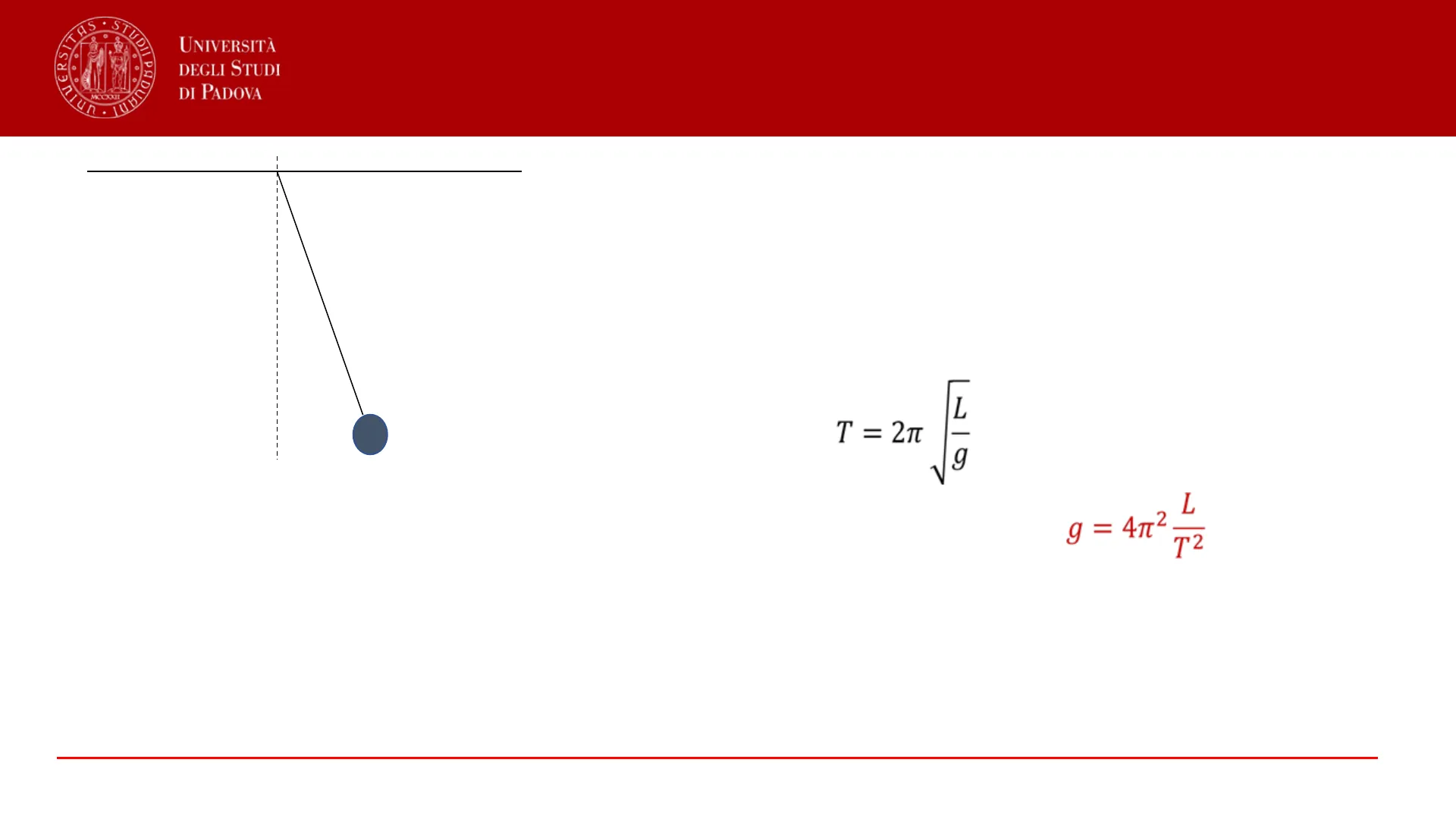 Stima di g con un pendolo semplice 2TAS . ST . O nQUERSITS MOOOI UNIVERSITÀ DEGLI STUDI DI PADOVA