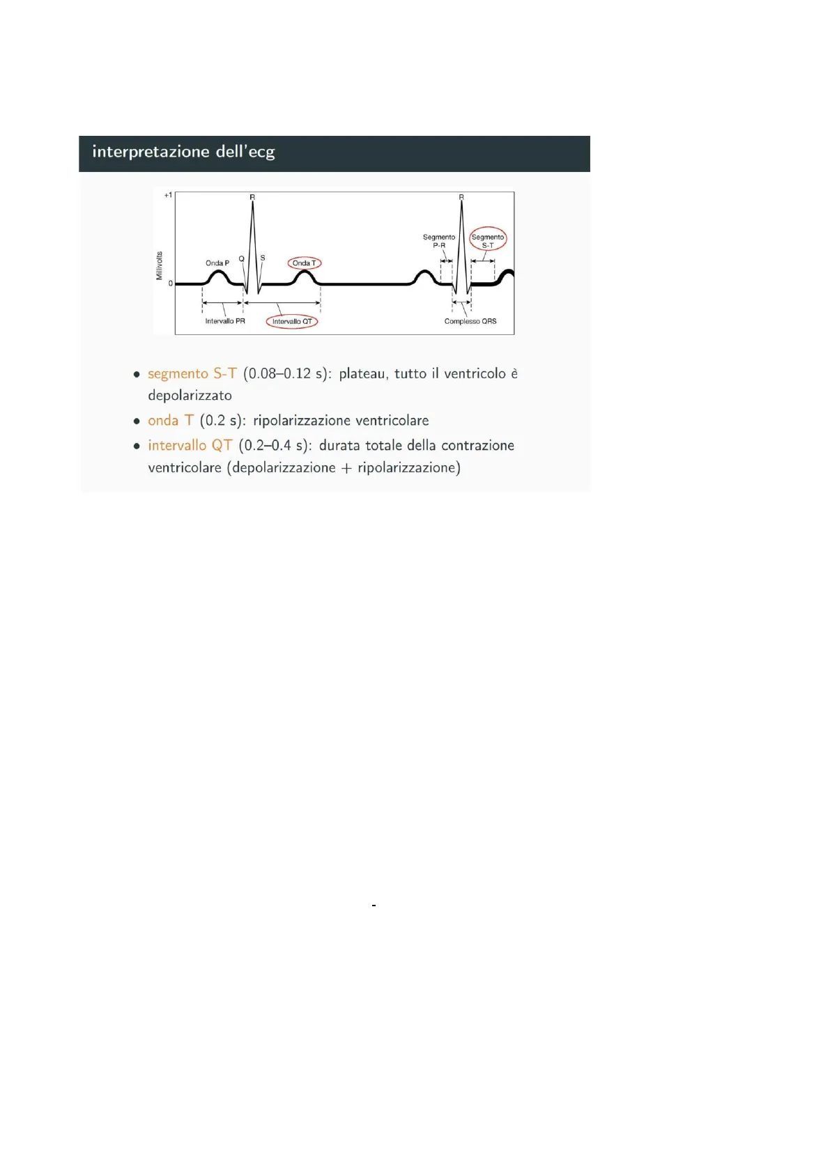 +1 R R Segmento P-R Segmento S-T Millivolts Q S Onda P Onda T 0 Intervallo PR Intervallo QT Complesso QRS