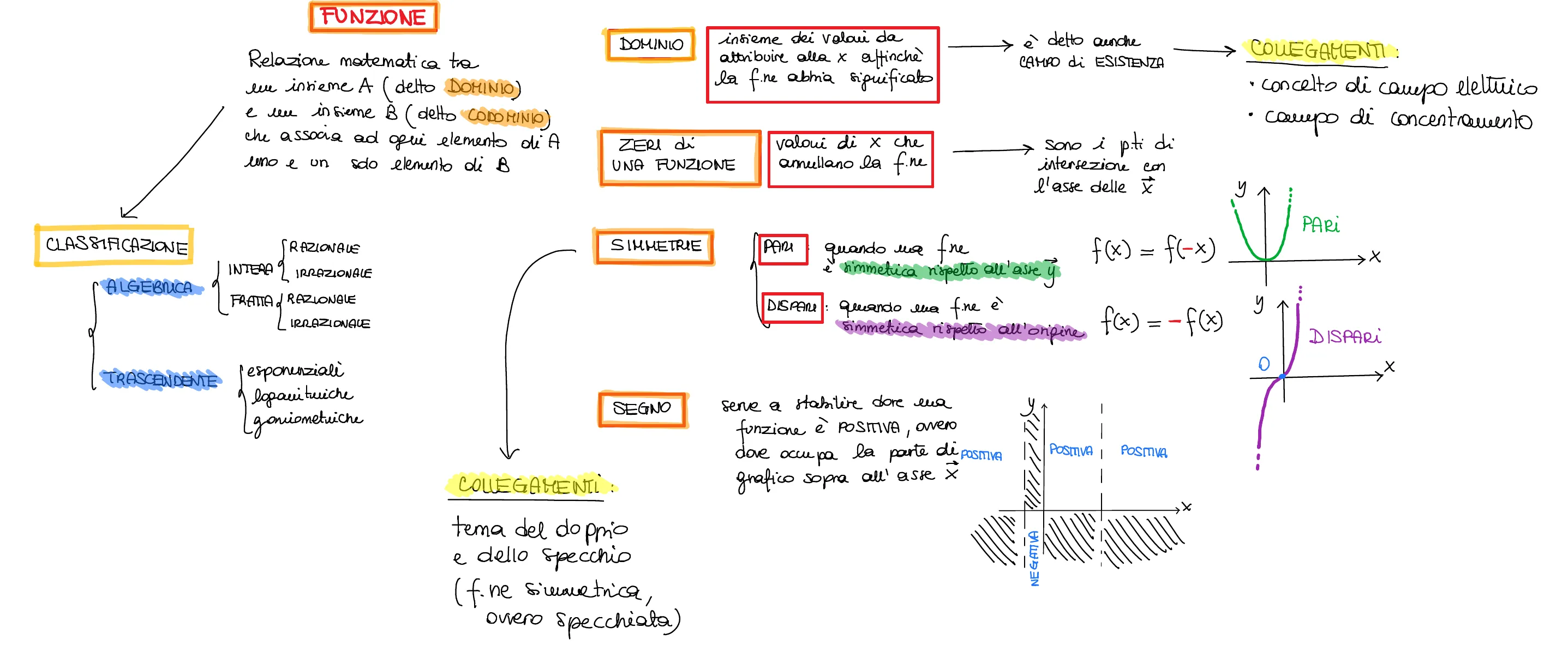 Schemi di matematica su funzioni, limiti, continuità e derivate. I Riassunti sono organizzati in mappe mentali scritte a mano, con definizioni e collegamenti tra i concetti, utili per il ripasso della Matematica a livello di scuola superiore.