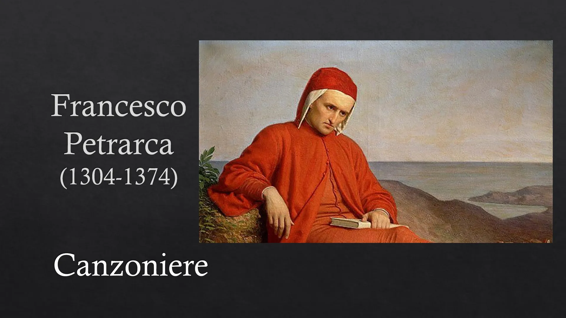 Titolo originale: Rerum vulgarium fragmenta = Frammenti di cose volgari (non latine). Titolo «Canzoniere» attribuito dal tipografo fiorentino Filippo Giunti nel Cinquecento.