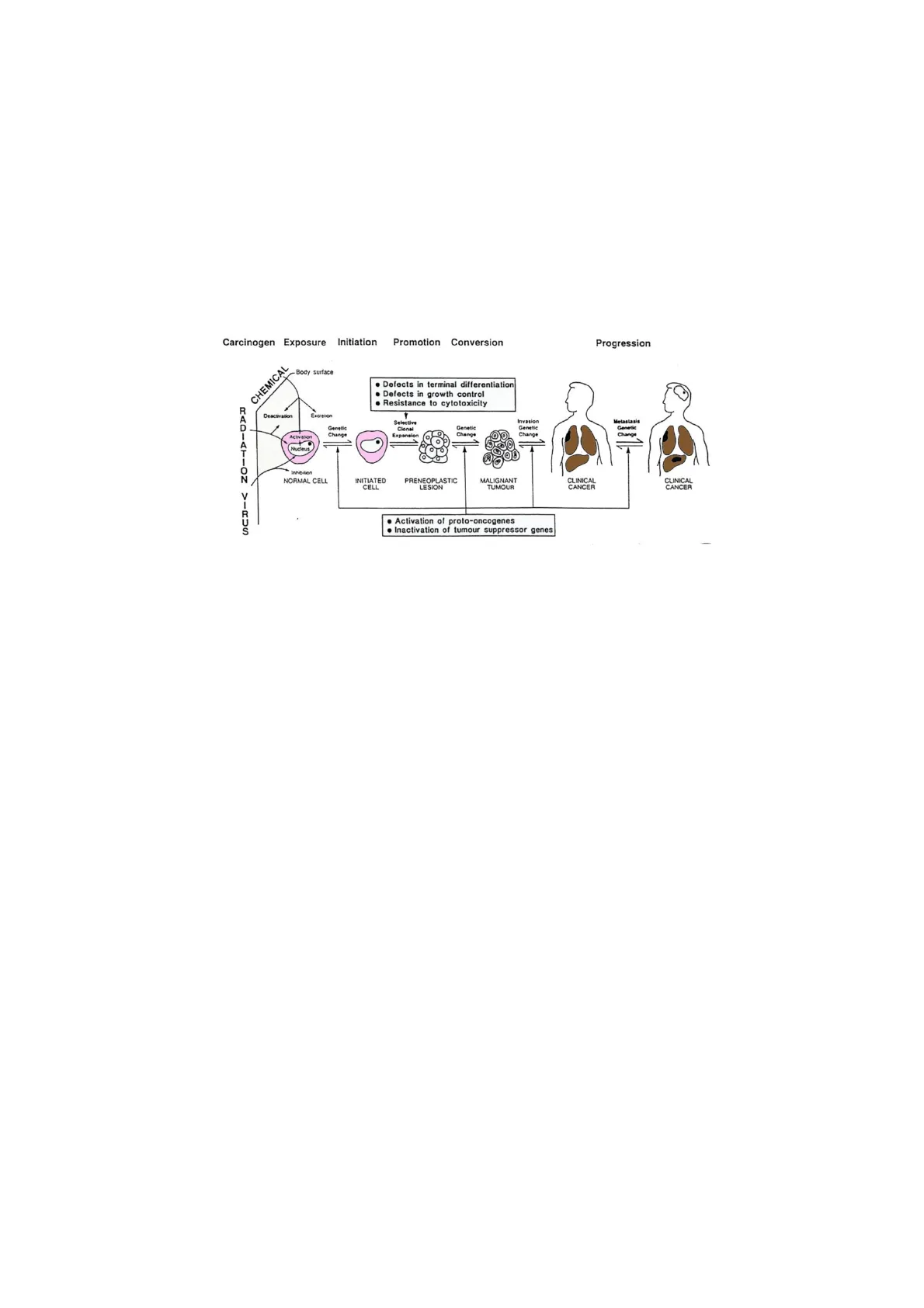 Dal punto di vista tossicologico ci si occupa delle fasi di iniziazione e promozione, mentre quella di progressione è di interesse clinico, essendo avvenuto il passaggio da tumore benigno a maligno.