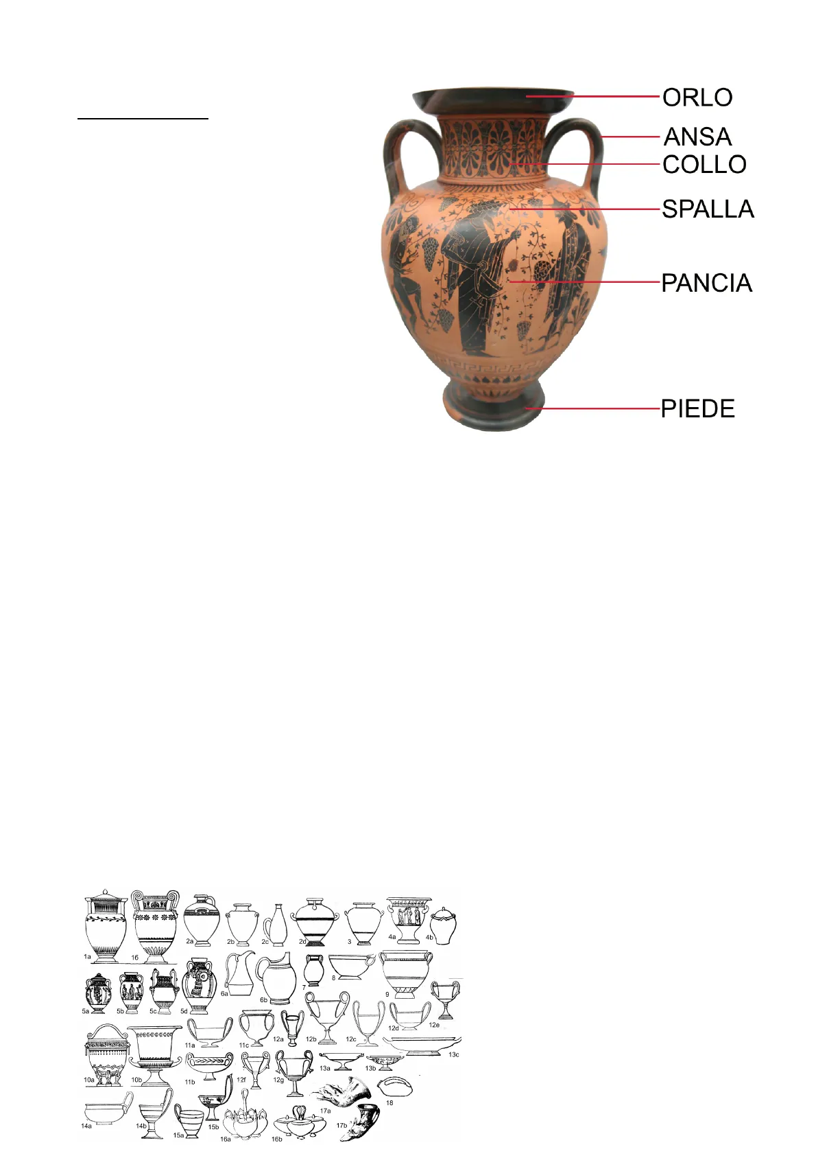 Data l'importanza della pittura vascolare nella cultura greca, è necessario conoscere i nomi, le forme e le funzioni dei vasi più comuni. Le varie parti del vaso vengono indicate con una terminologia fissa che ha come riferimento il corpo umano.