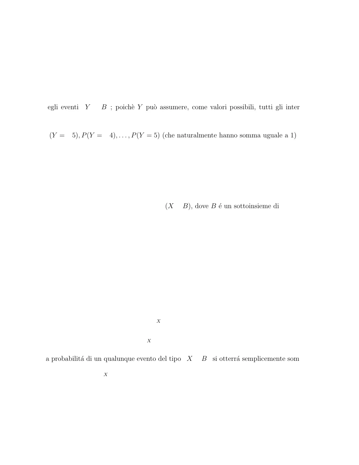 Per calcolare le probabilitá di eventi relativi ad una variabile aleatoria discreta cioé per descriverne la distribuzione di probabilitá) é sufficiente assegnare, per ciascun numero reale x, la probabilitá con cui X assume tale valore. Si puó quindi introdurre una funzione reale di variabile reale px definita come segue Px (x)= P(X = x la probabilitá di un qualunque evento del tipo {X € B} si otterrá semplicemente som- mando i valori di px (x) per tutti gli x che appartengono a B. Possiamo pensare a questa funzione (che é chiamata funzione di probabilitá) come ad un modello matem- atico (in certi casi ovvio, in altri meno e legato ad informazioni sul fenomeno aleatorio coinvolto) per descrivere il comportamento di una variabile aleatoria discreta.