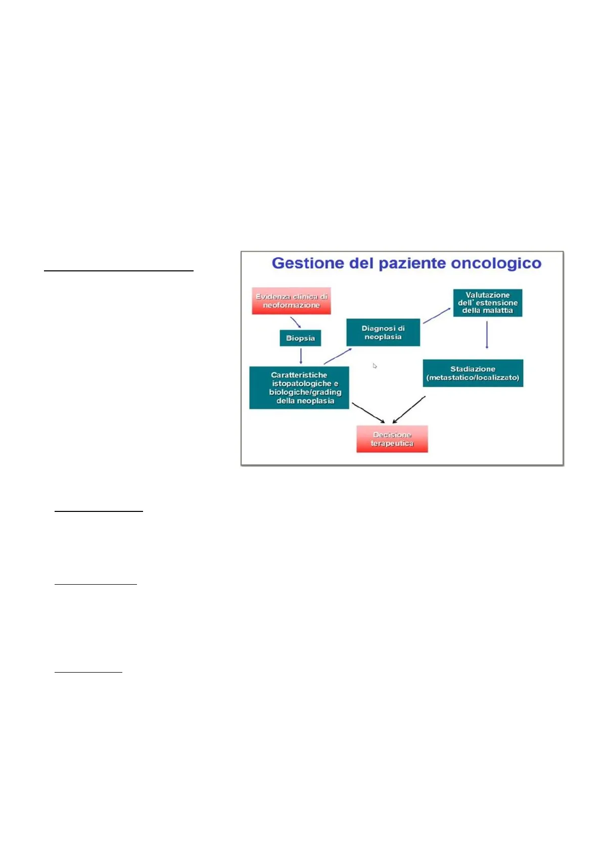 1. VALUTAZIONE DELLA MALATTIA ALGORITMO DIAGNOSTICO Tutto parte dall'evidenza di una neoformazione e dal sospetto che questa possa essere una neoplasia. In presenza di una qualsiasi neoformazione è necessario stabilire con assoluta sicurezza cosa si ha di fronte, cioè dare "un nome ed un cognome" alla malattia. Per fare questo occorre fare un prelievo bioptico che consenta di conoscere la patologia e in virtù di ciò prendere decisioni terapeutiche adeguate.
