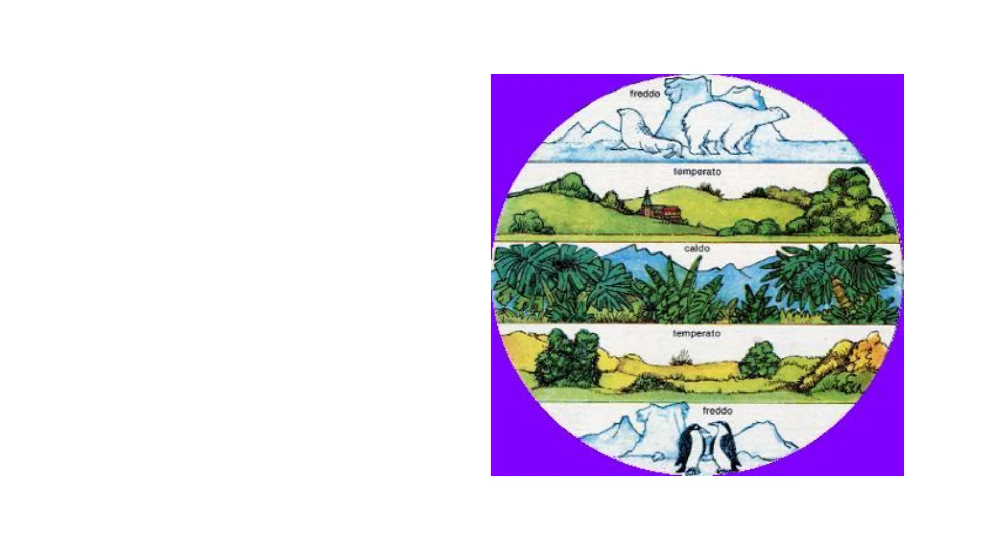 La zona più calda della Terra è quella che si trova in prossimità dell'equatore, man mano che ci si allontana il clima diventa prima mite fino a diventare freddo.