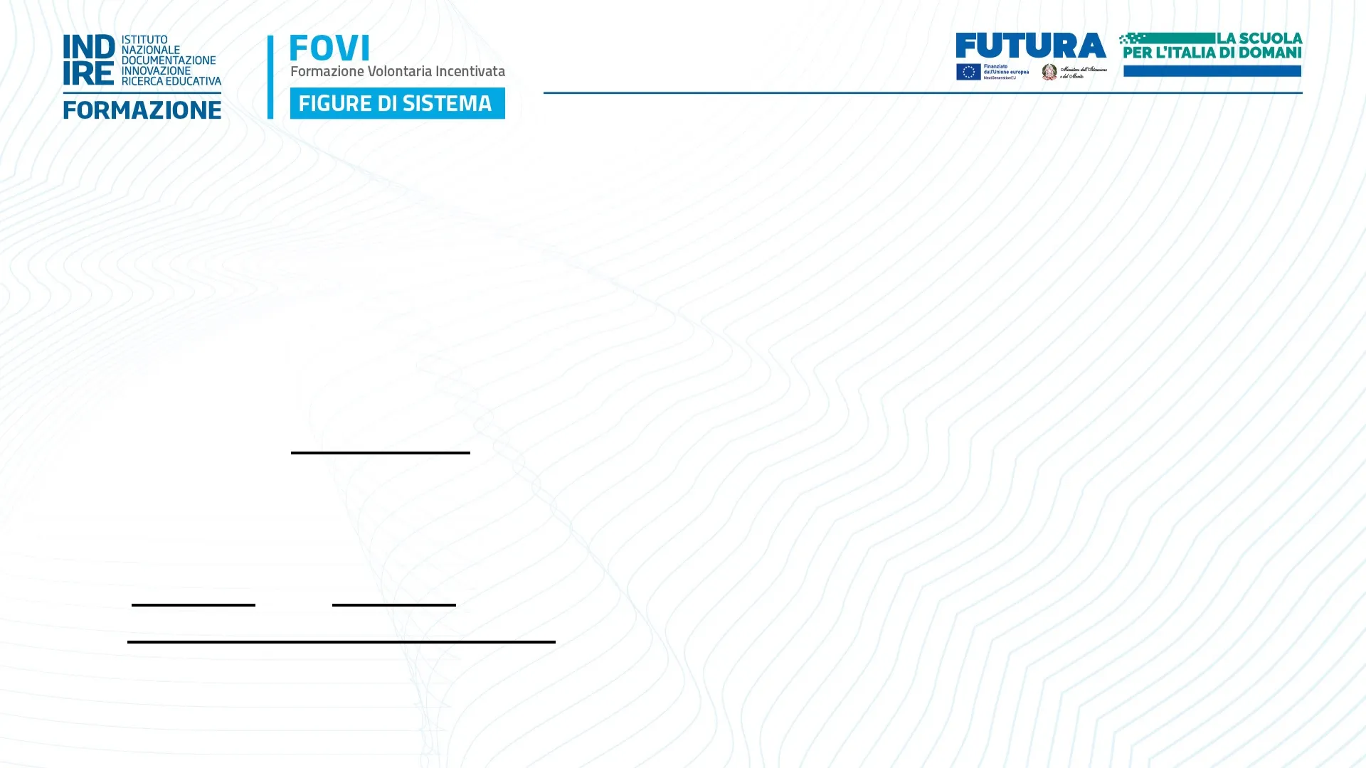 ISTITUTO NAZIONALE DOCUMENTAZIONE INNOVAZIONE RICERCA EDUCATIVA FOVI Formazione Volontaria Incentivata FIGURE DI SISTEMA FUTURA Finanziato dall'Unione europea NiestGenerationGu ILA SCUOLA PER L'ITALIA DI DOMANI