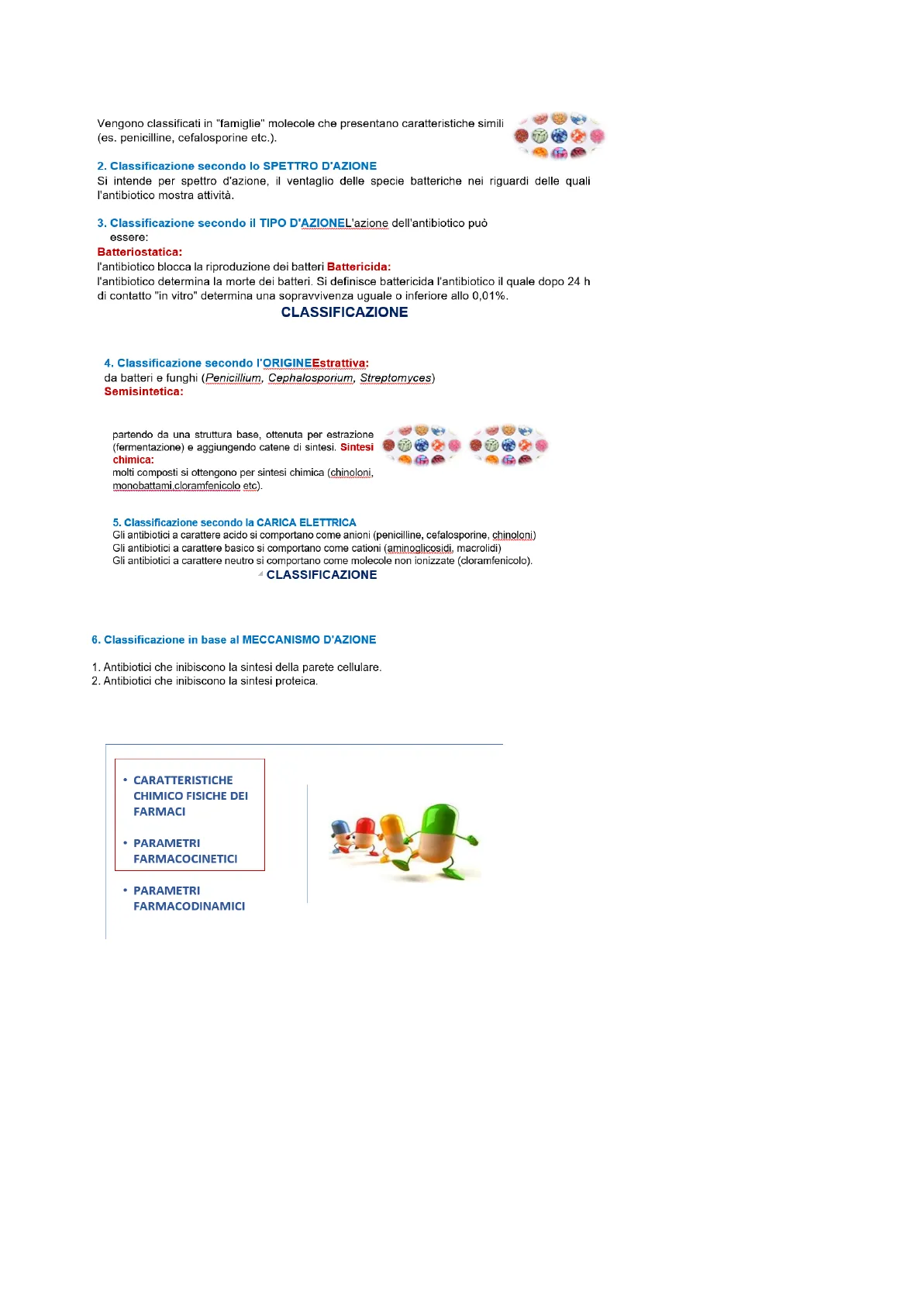 Vengono classificati in "famiglie" molecole che presentano caratteristiche simili (es. penicilline, cefalosporine etc.).