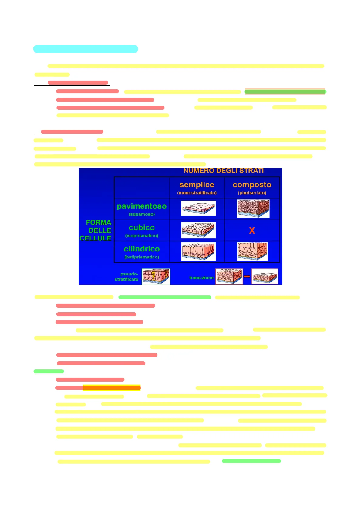 strato: porzione di epitelio di rivestimento in cui le cellule sono tutte dello stesso tipo