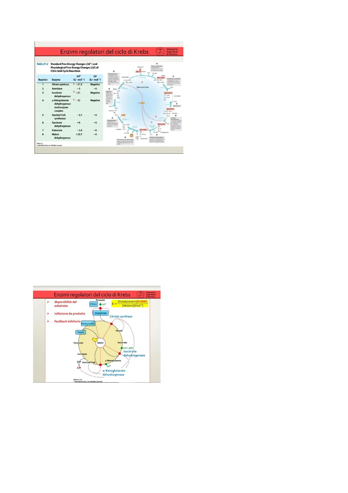 L'enzima che regola, quindi, il flusso metabolico nel Krebs è la Citrato Sintasi sotto controllo metabolico del suo prodotto e del Succinil Co-A (prodotto più avanti). Più di un metabolita che dà inibizione per Feedback negativo.