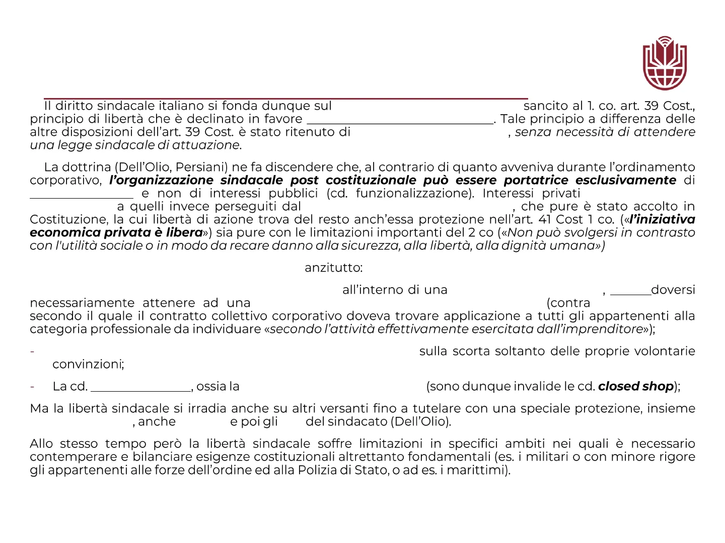 UnitelmaSapienza Università degli Studi di Roma Libertà e organizzazione sindacale Valerio Maio, Prof. Ord. Diritto del Lavoro UnitelmaSapienza.itLe implicazioni del principio di libertà sindacale Il diritto sindacale italiano si fonda dunque sul principio di libertà sindacale sancito al 1. co. art. 39 Cost., principio di libertà che è declinato in favore dell'organizzazione sindacale. Tale principio a differenza delle altre disposizioni dell'art. 39 Cost. è stato ritenuto di immediata applicazione, senza necessità di attendere una legge sindacale di attuazione.
